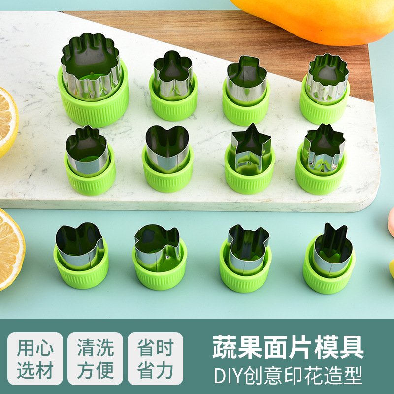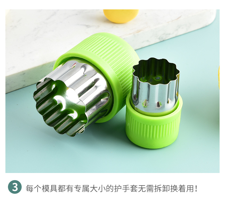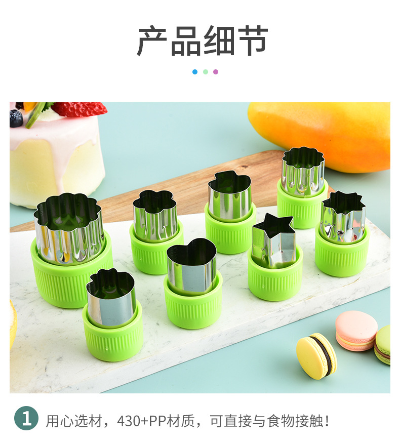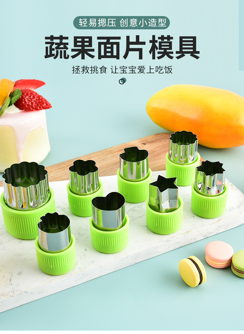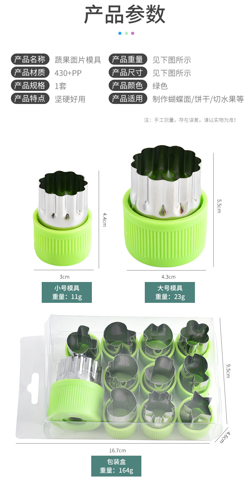 不锈钢水果切卡通家用蔬菜水果切花器婴儿辅食蝴蝶面9件套一体