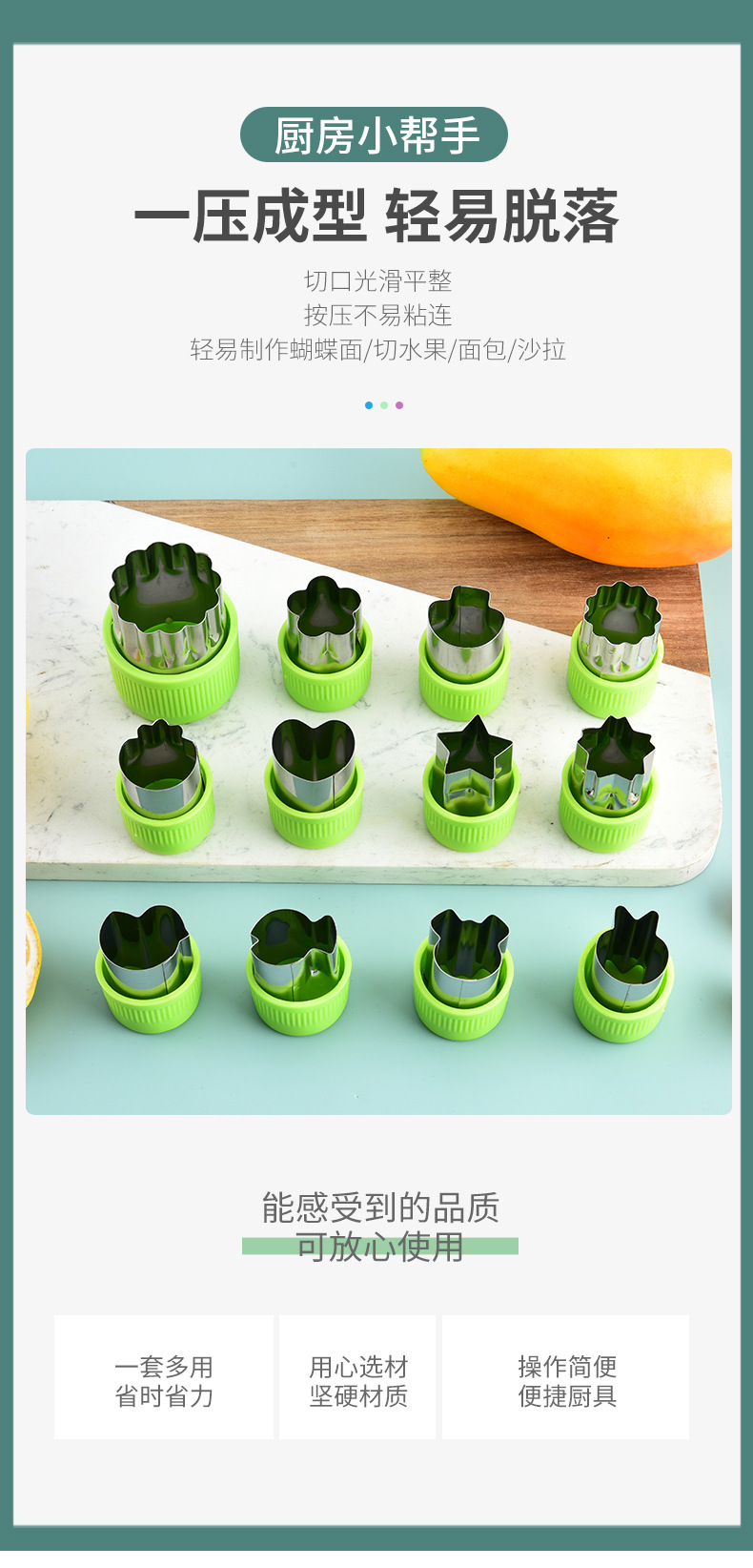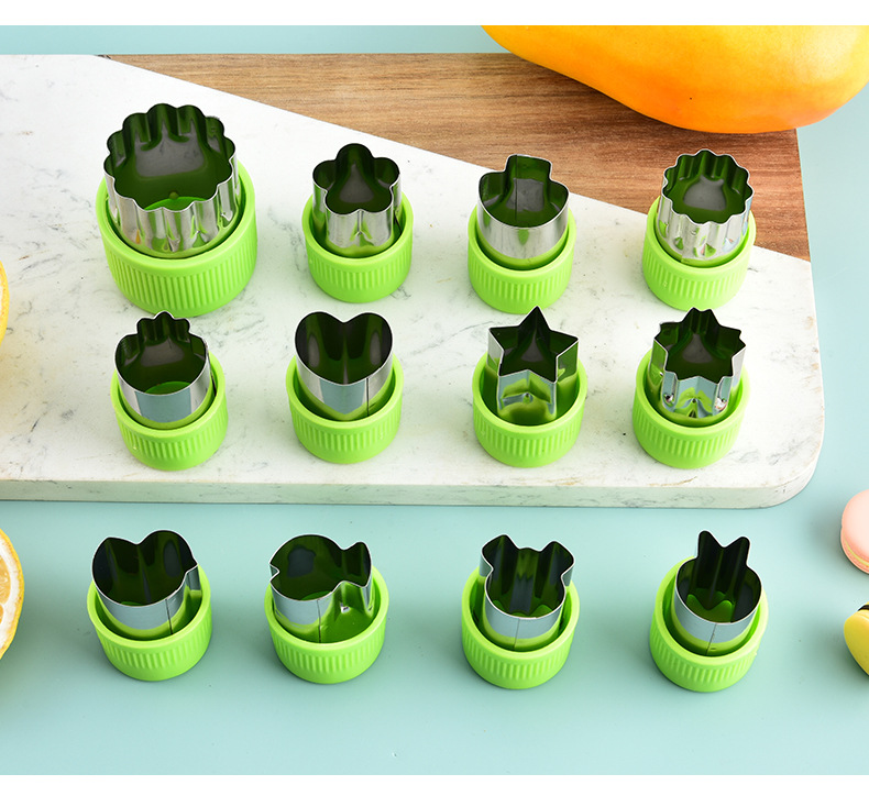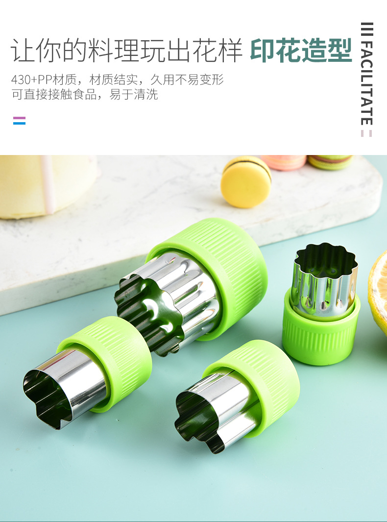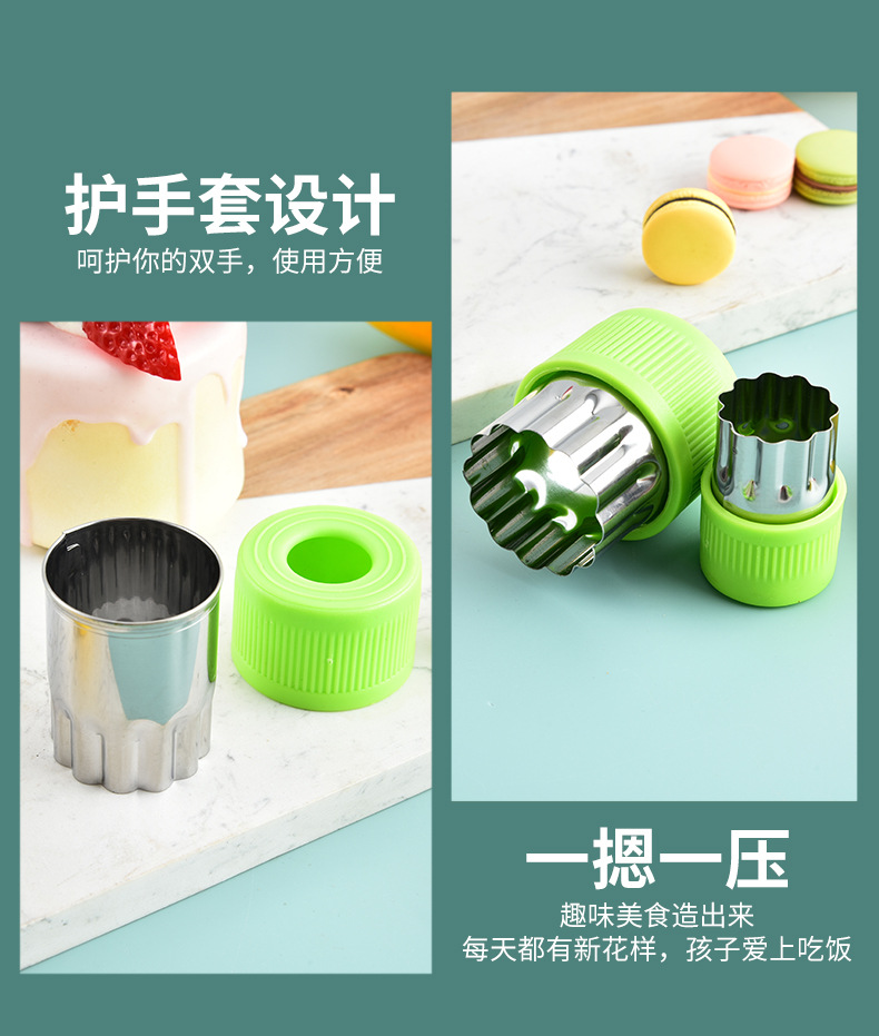不锈钢水果切卡通家用蔬菜水果切花器婴儿辅食蝴蝶面9件套一体