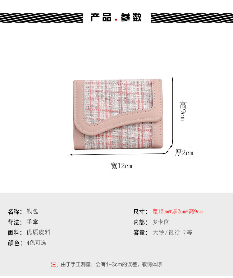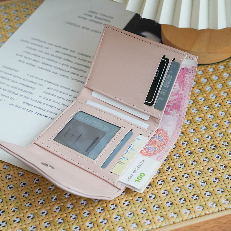 新款钱包香风韩系大容量ins钱包女士学生纯色简约女士钱包小三折