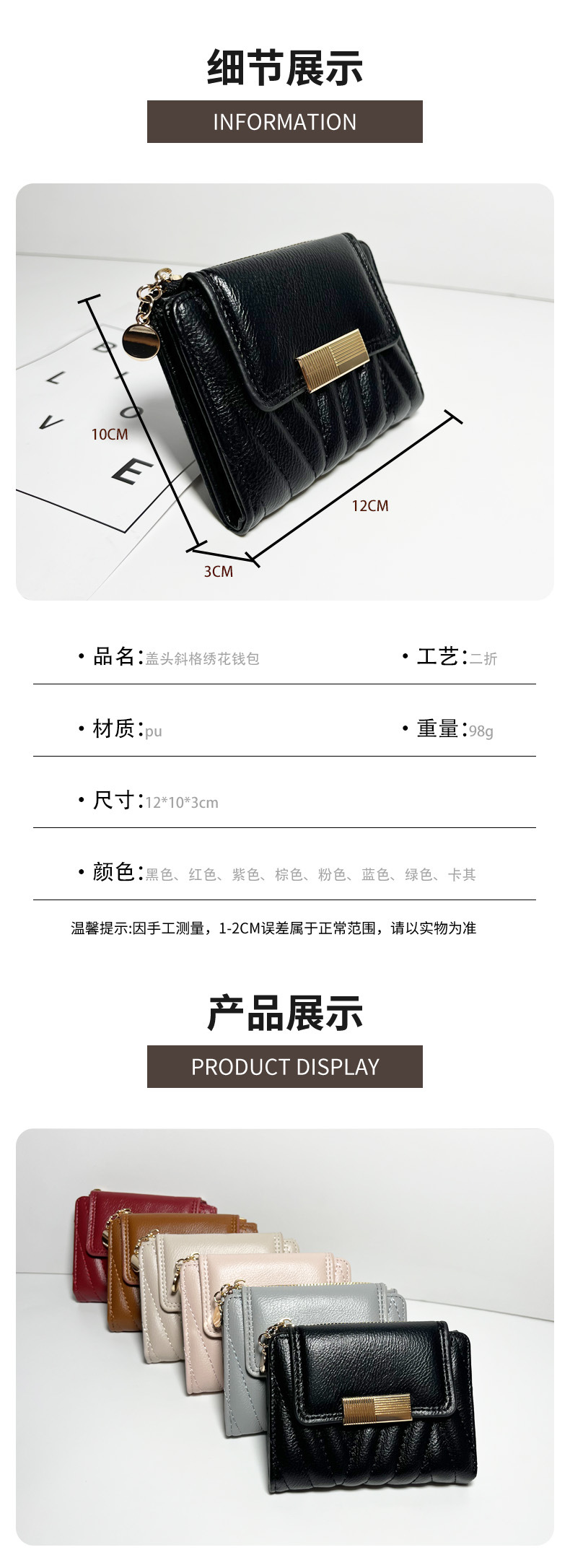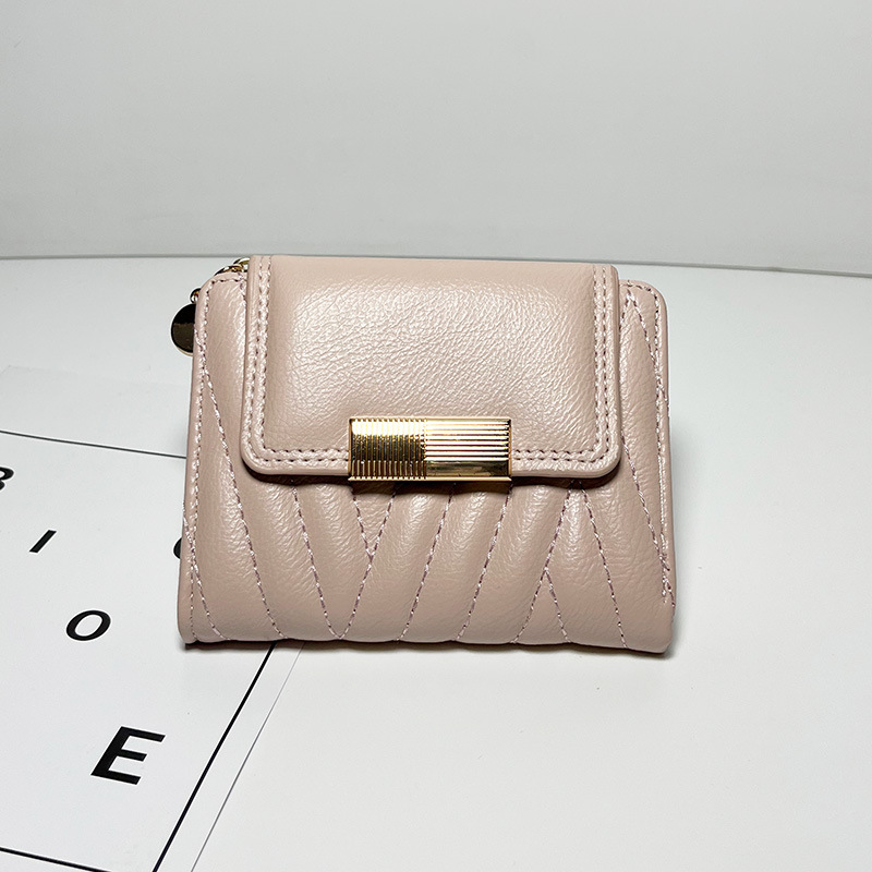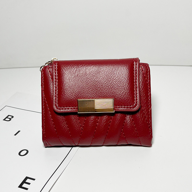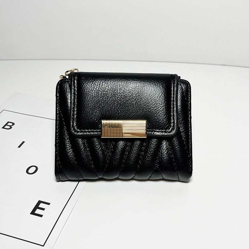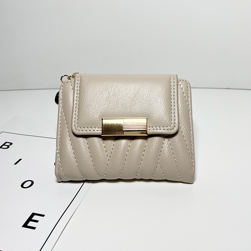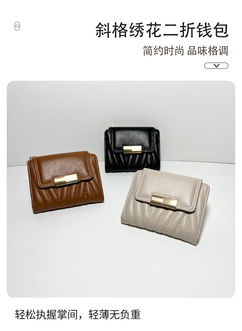 外贸热销女士钱包短款韩版小众气质纯色二折包大容量PU手拿包批发