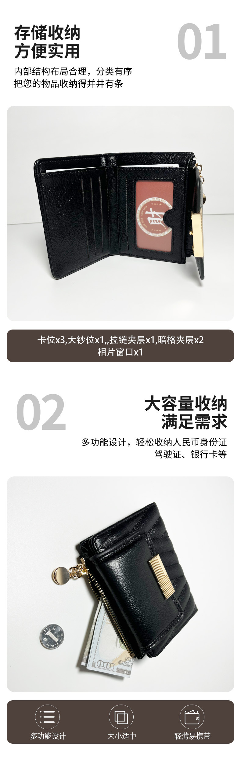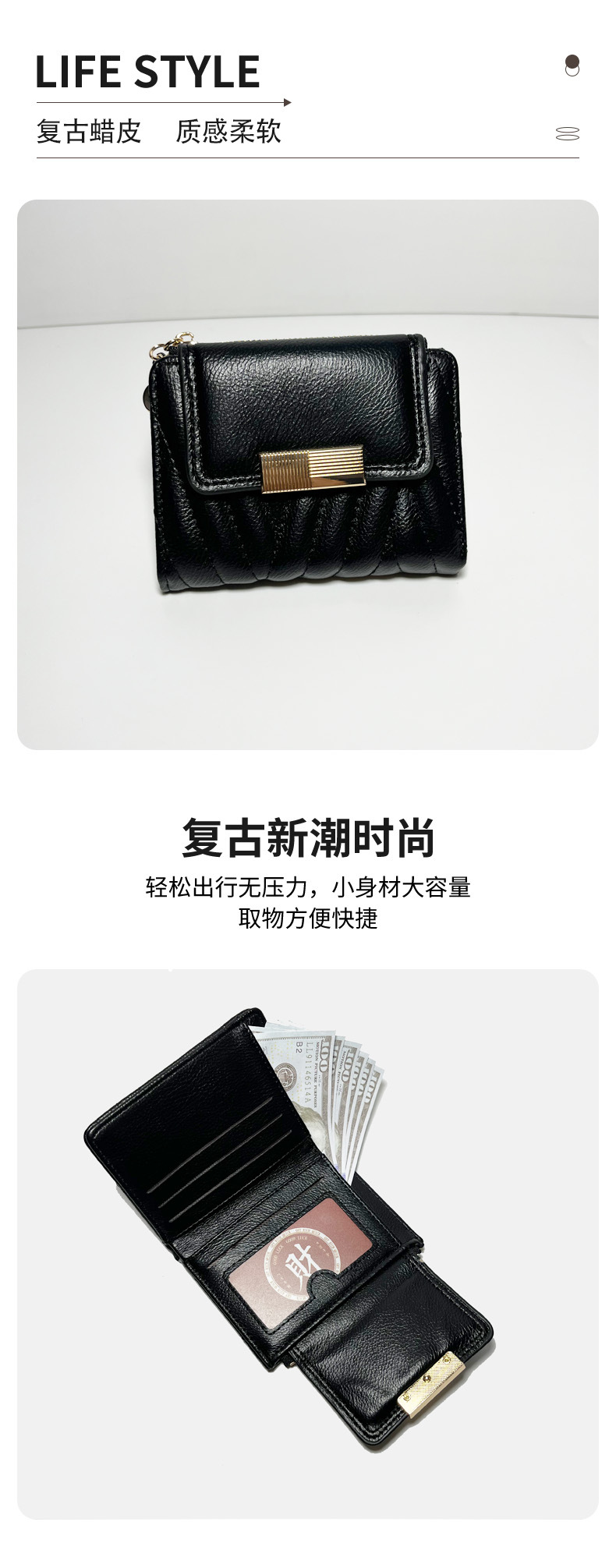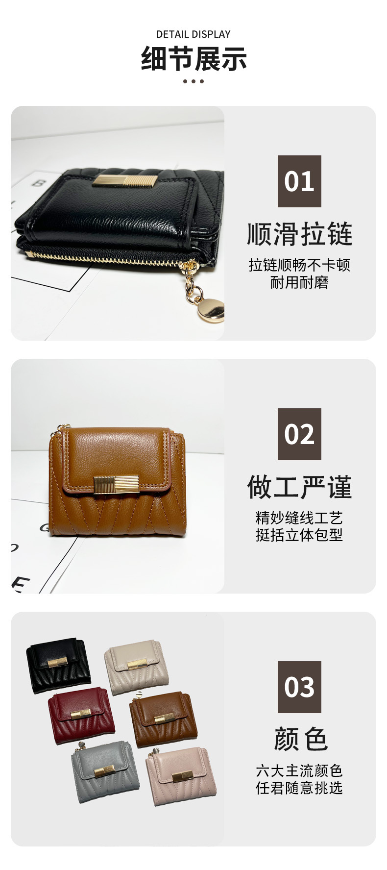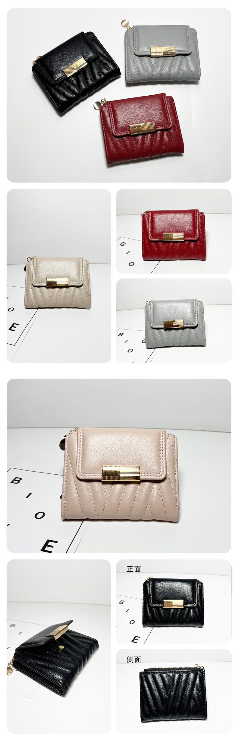 外贸热销女士钱包短款韩版小众气质纯色二折包大容量PU手拿包批发