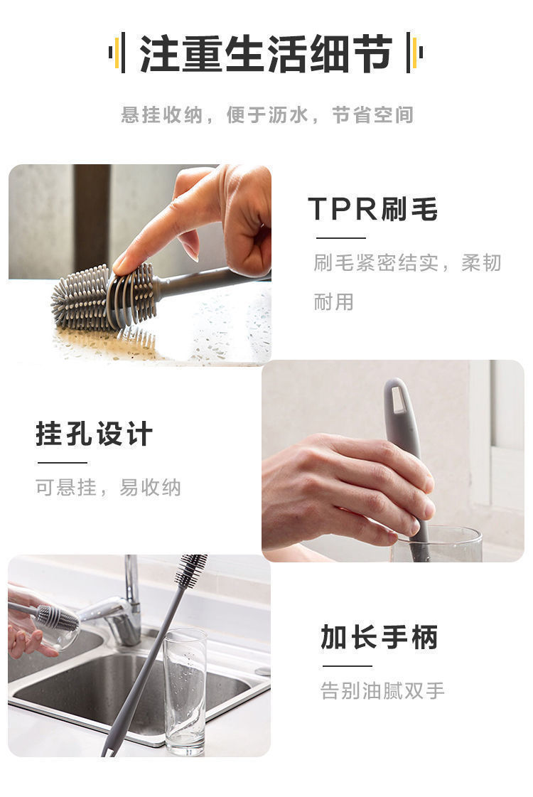 奶瓶刷厨房家用婴儿童杯刷多功能硅胶长柄杯刷无死角清洁刷子义乌