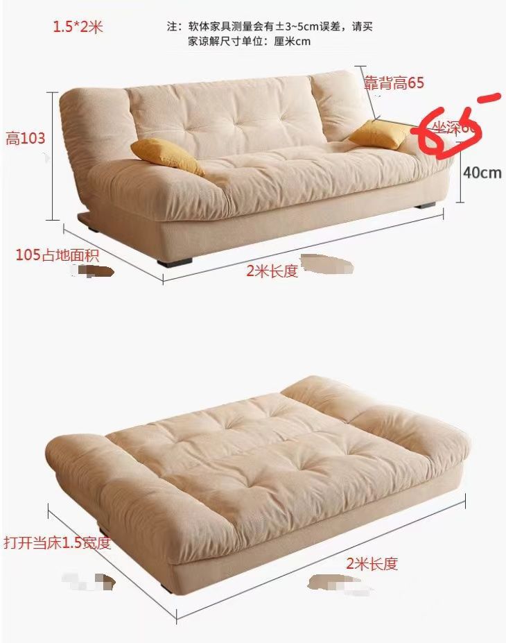 实木云朵两用可折叠沙发多功能客厅小户型沙发床现代奶油风网红款