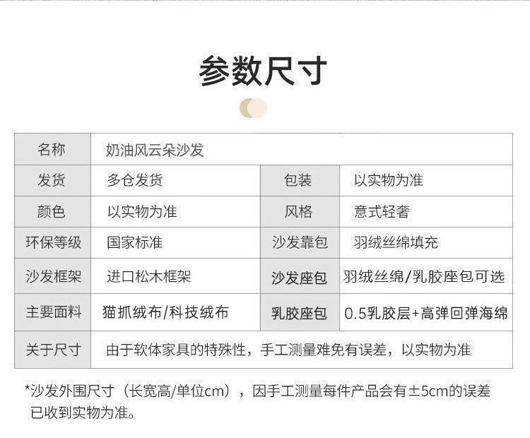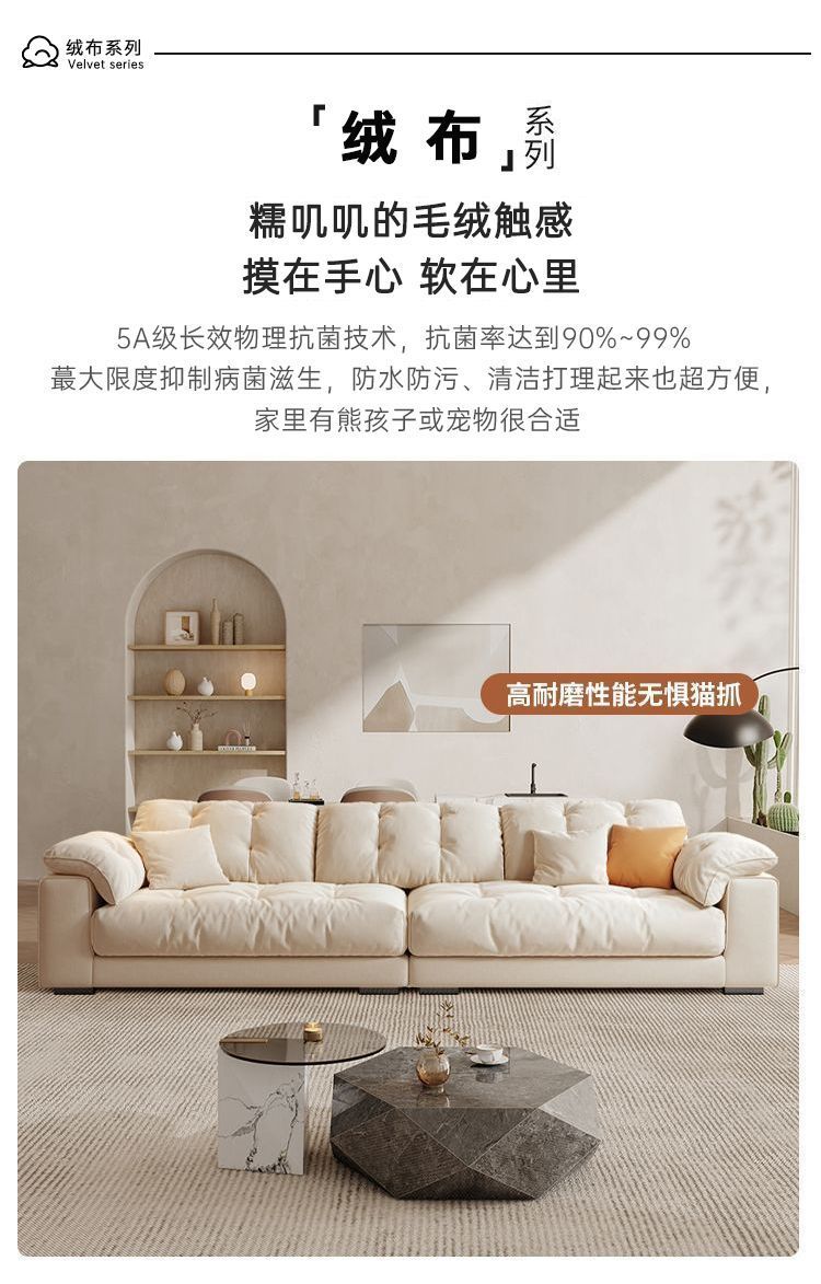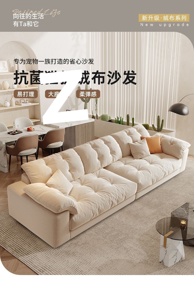 猫爪布艺沙发现代简约轻奢出租直排云朵沙发奶油风客厅家用小户型