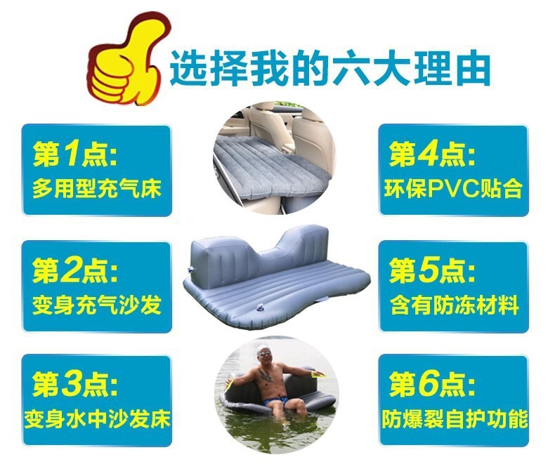 折叠车载充气床 PVC植绒汽车充气床垫 SUV车内旅行充气床内饰用品