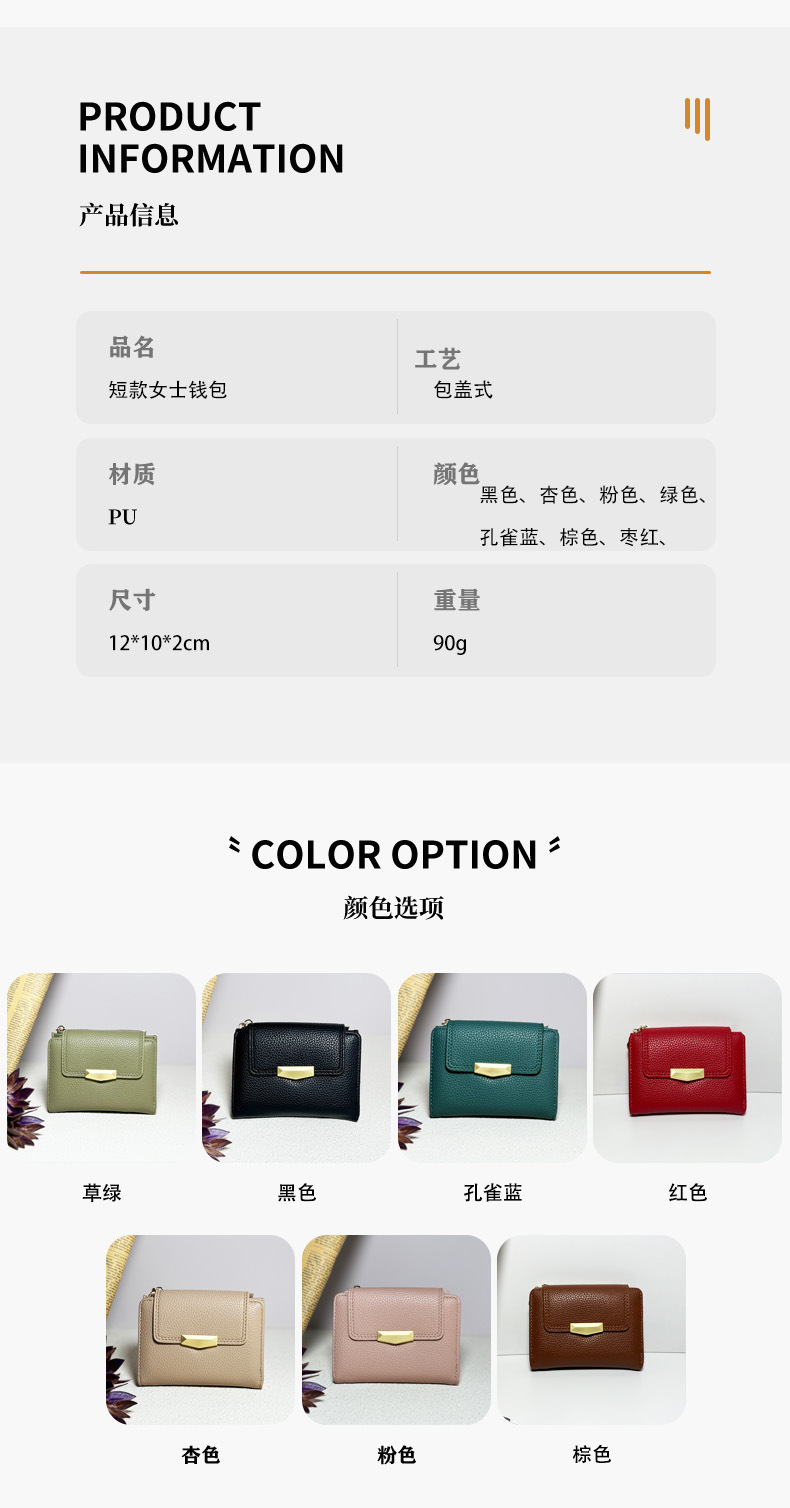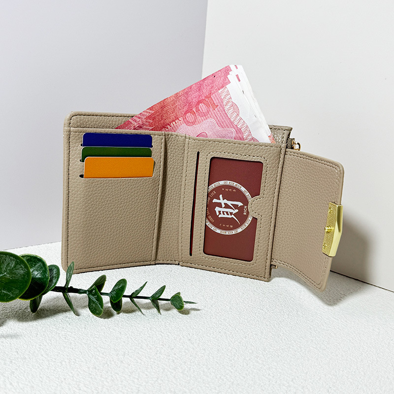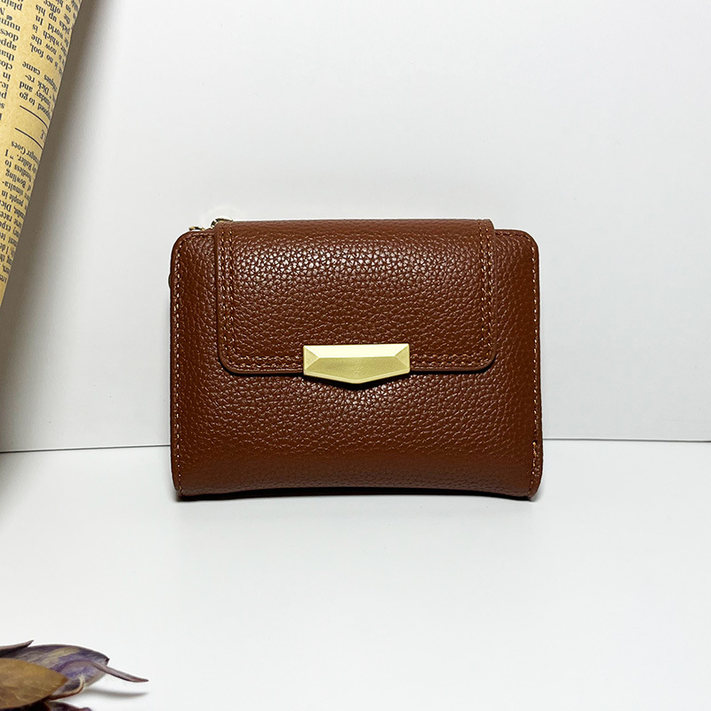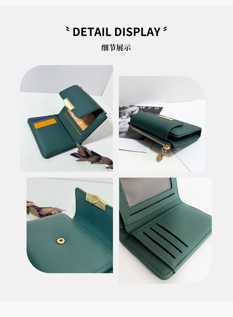 跨境新款女士短款钱包迷你荔枝纹高级感三折叠多卡位手拿包软皮夹