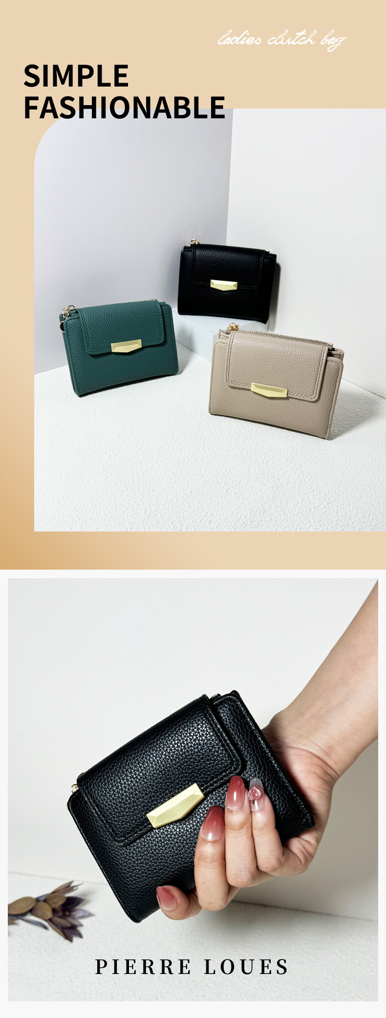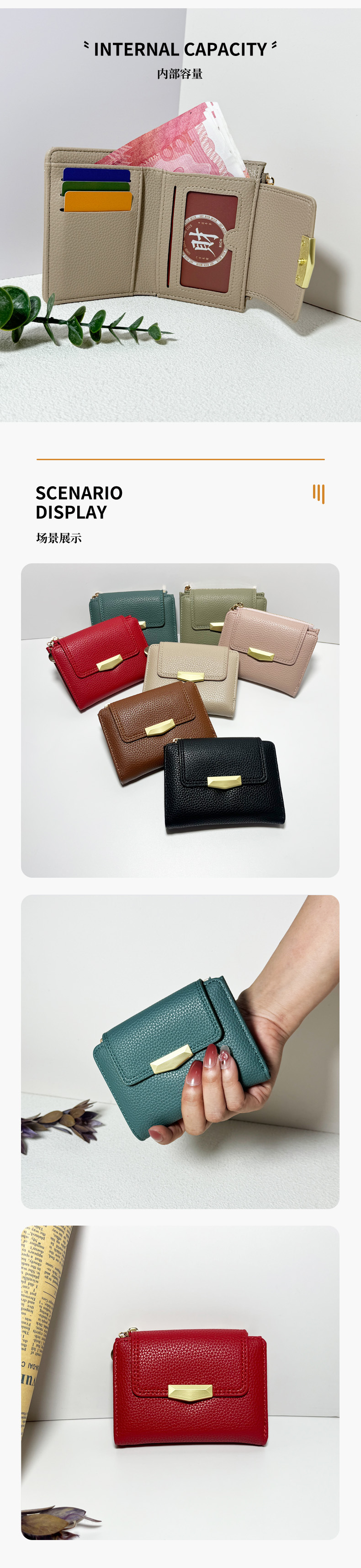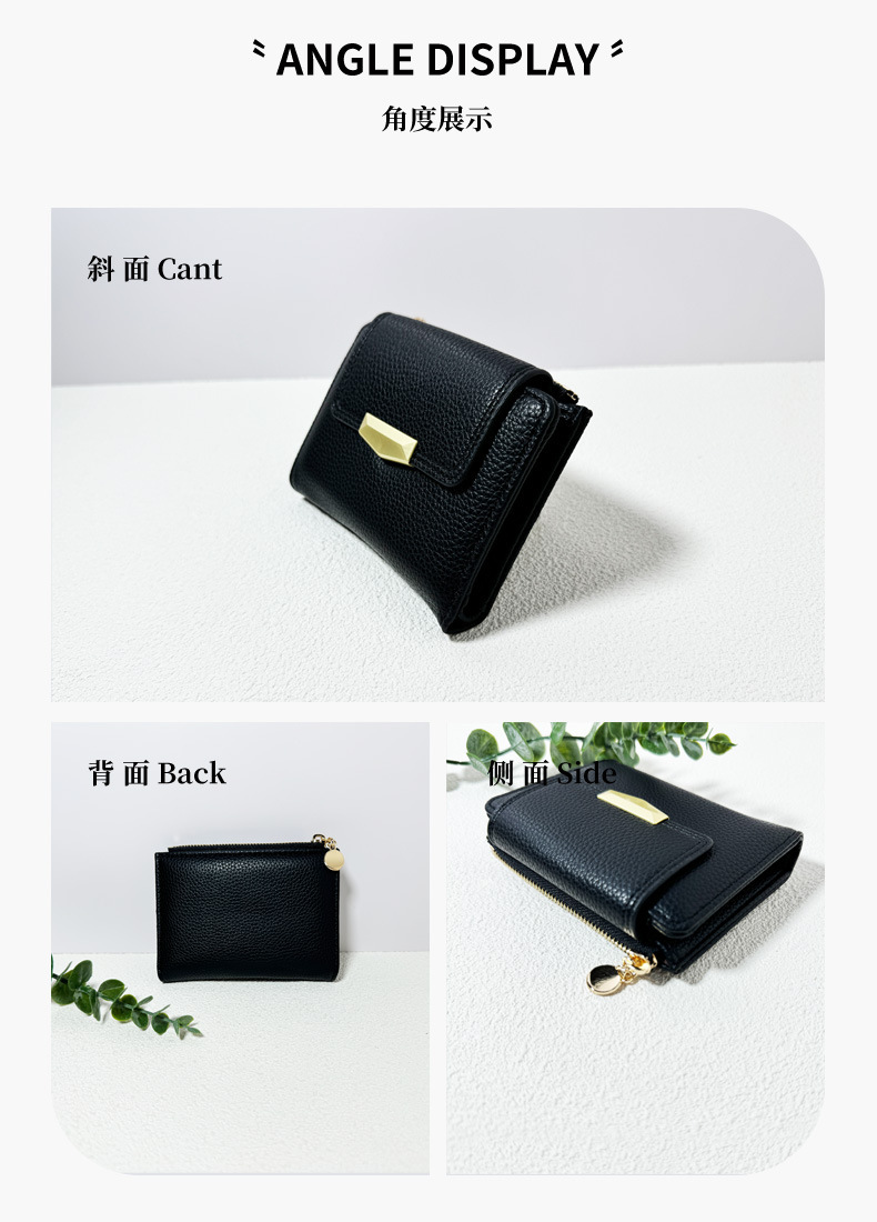 跨境新款女士短款钱包迷你荔枝纹高级感三折叠多卡位手拿包软皮夹