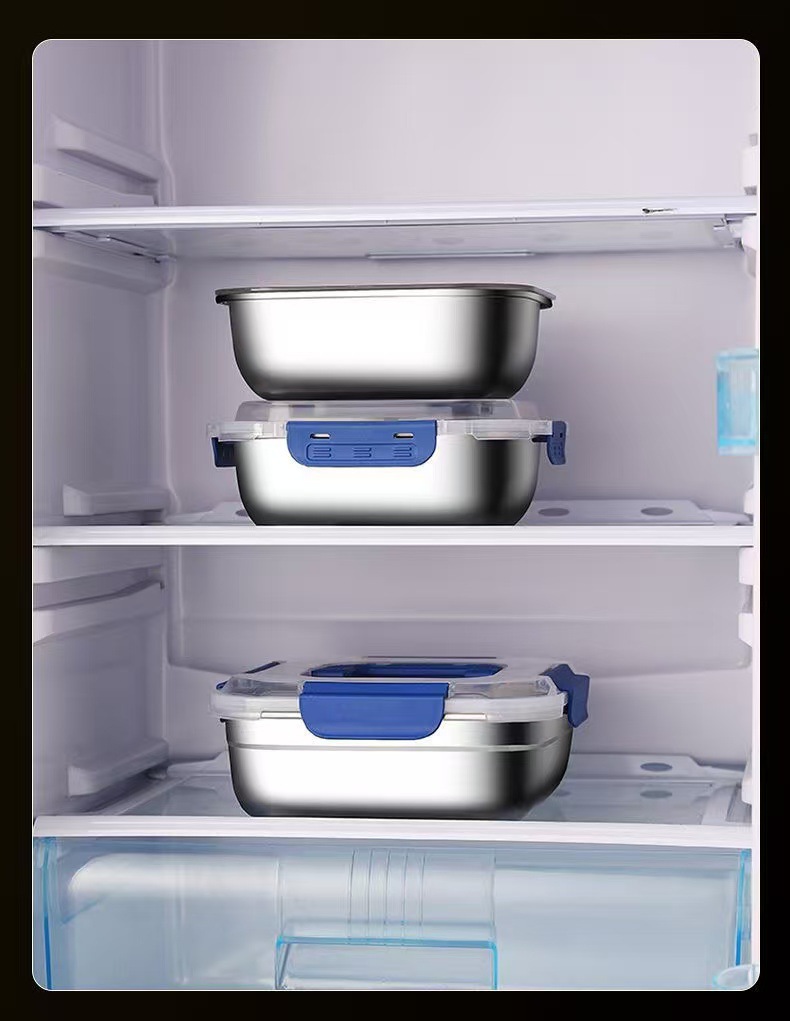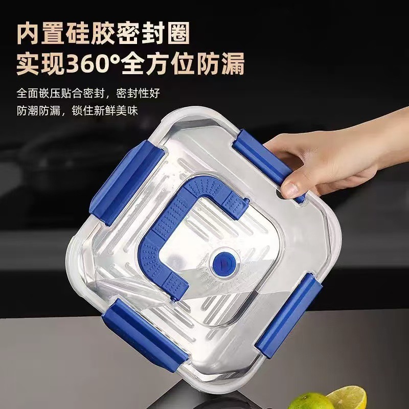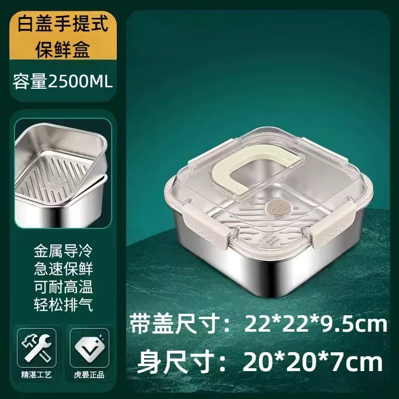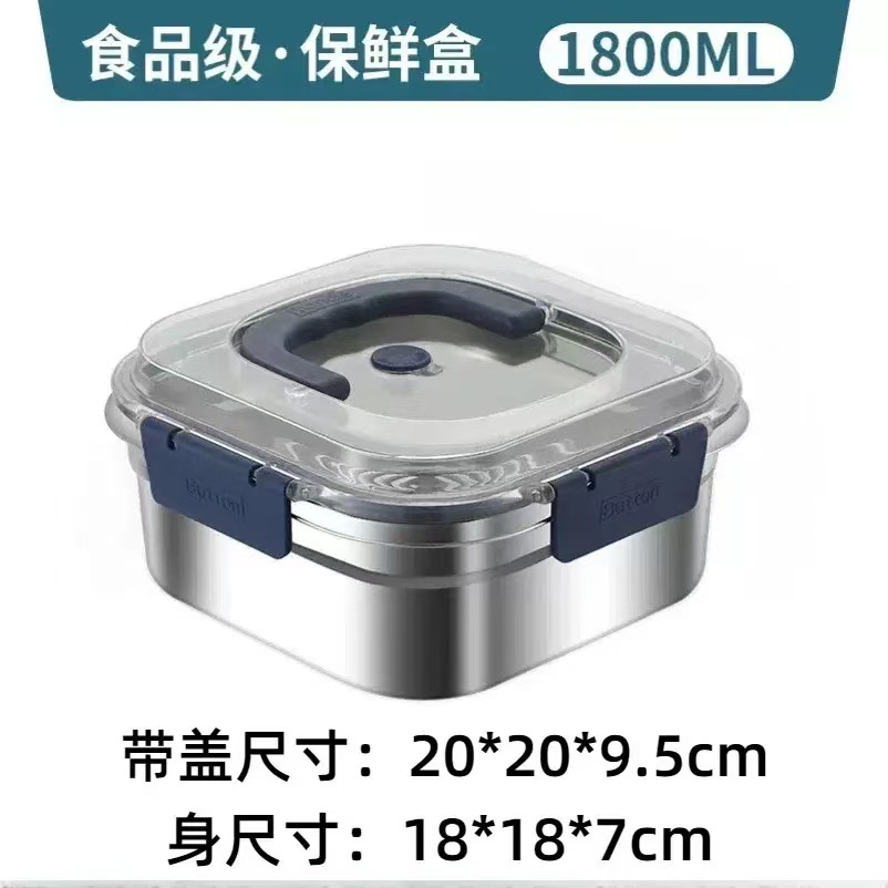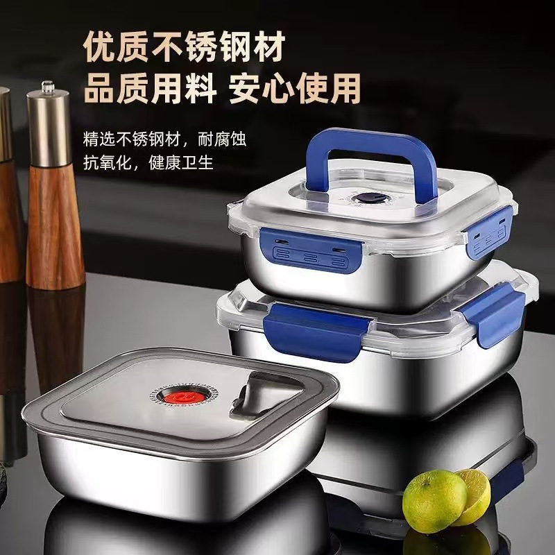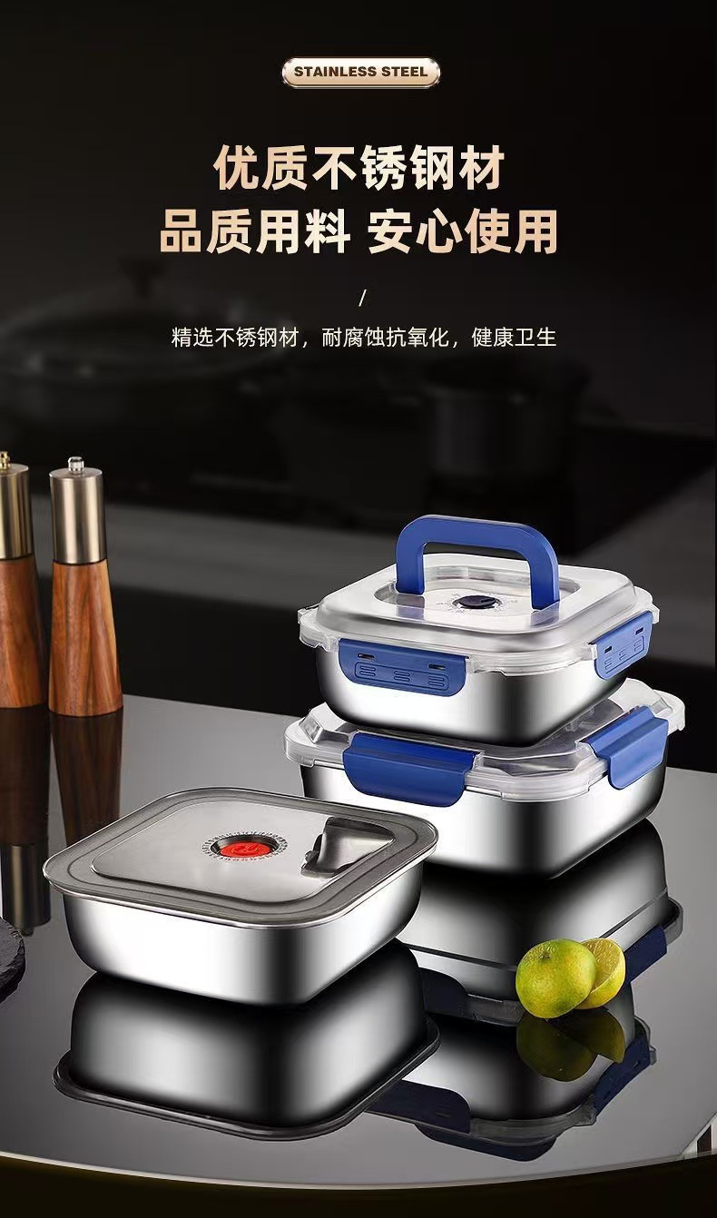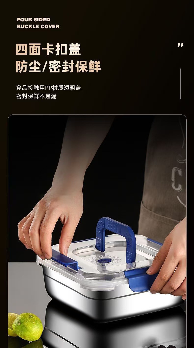 食品级不锈钢保鲜盒手提盖冰箱收纳盒密封水果便当盒户外耐高温