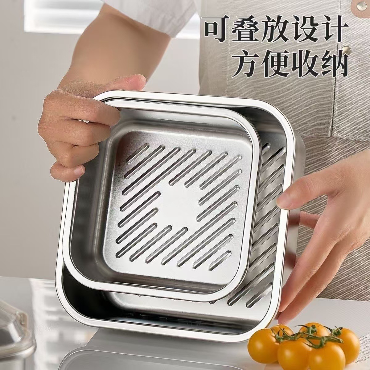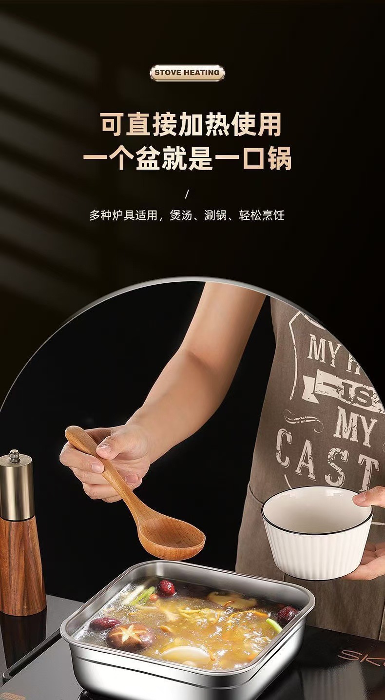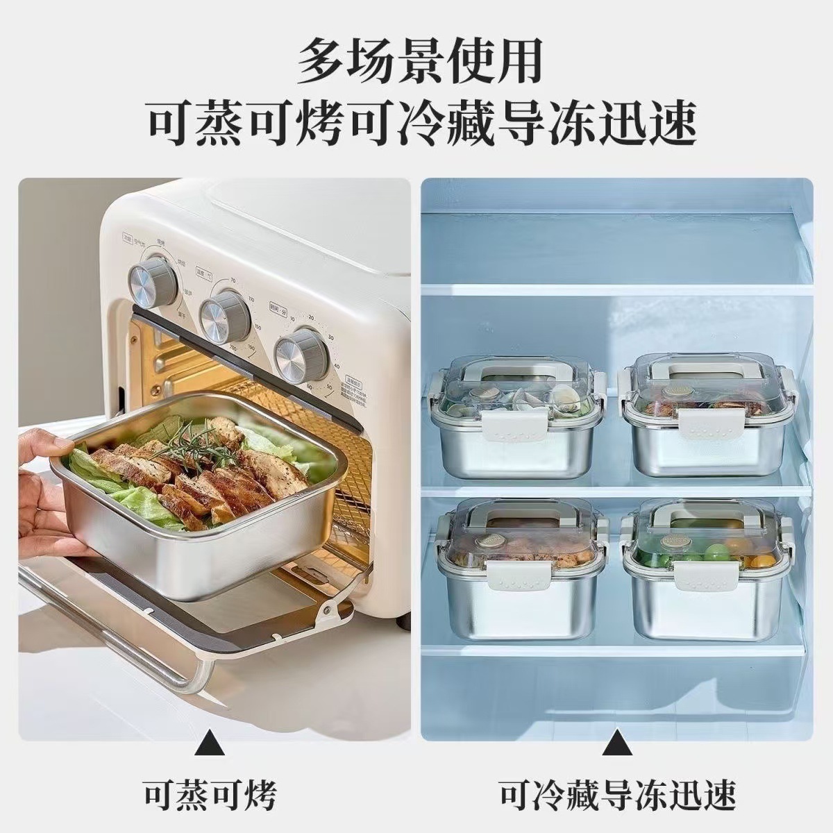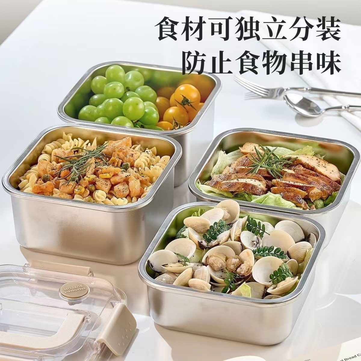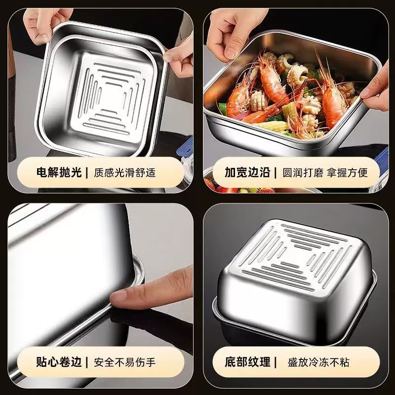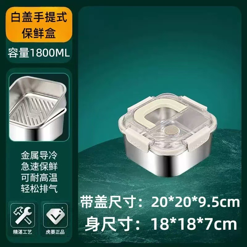 食品级不锈钢保鲜盒手提盖冰箱收纳盒密封水果便当盒户外耐高温