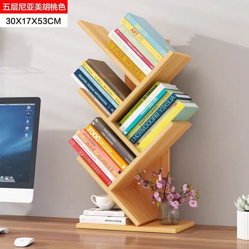 树形书架置物架落地多层客厅储物架简易窄小书柜一体靠墙边收纳架
