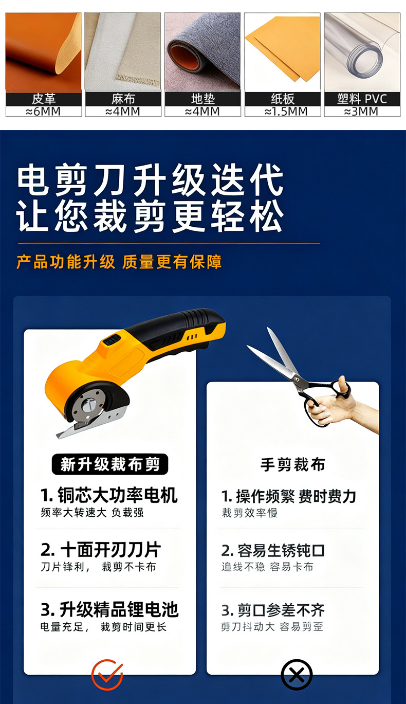 跨境电动剪刀锂电小型圆形裁布机便捷服装皮革布料切布裁剪机工具