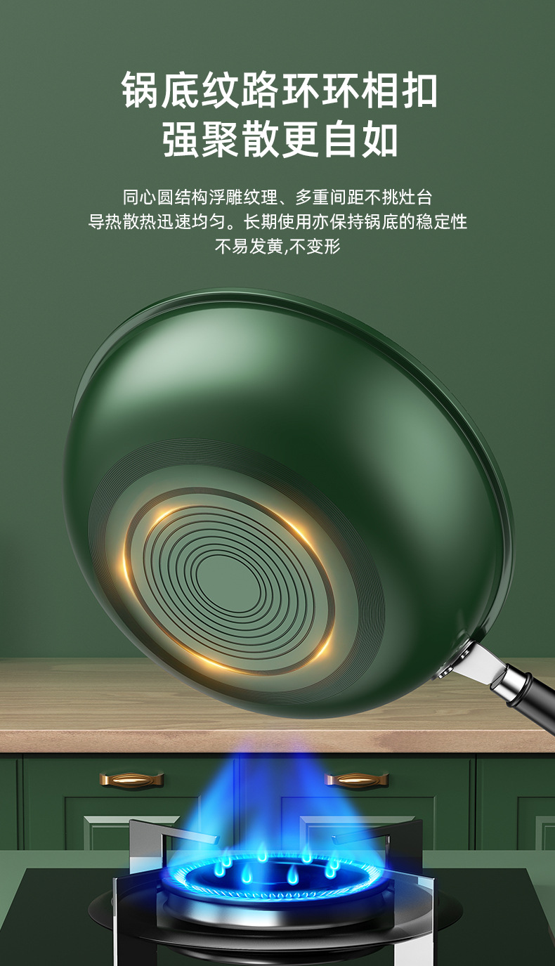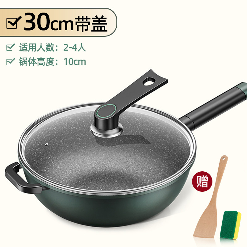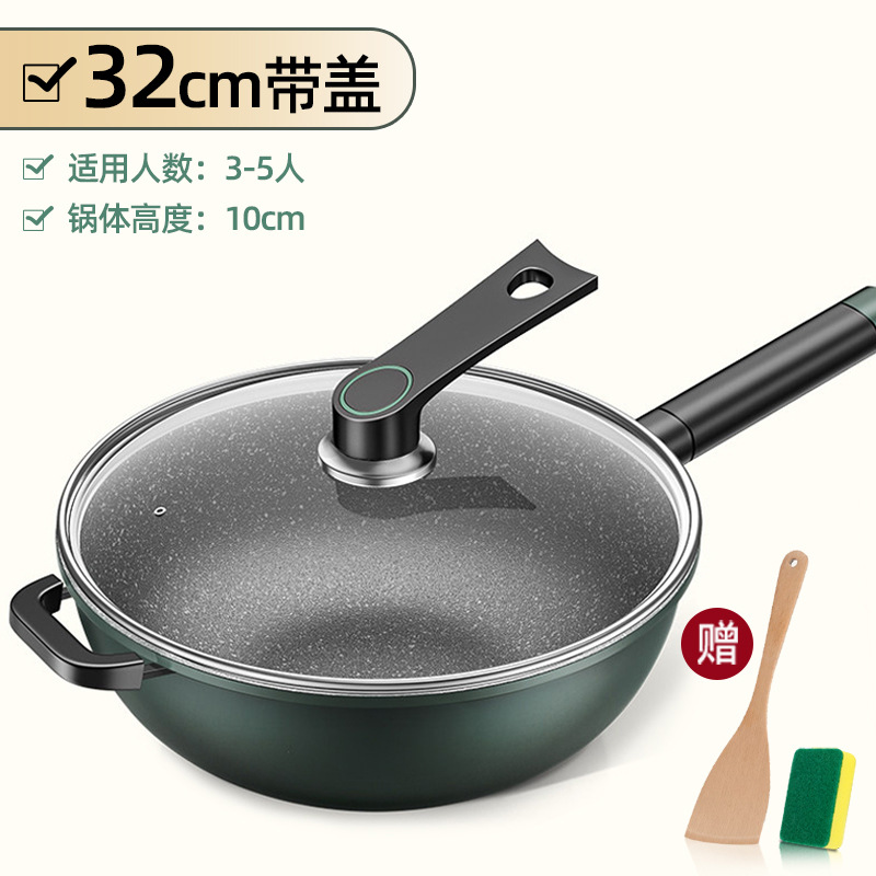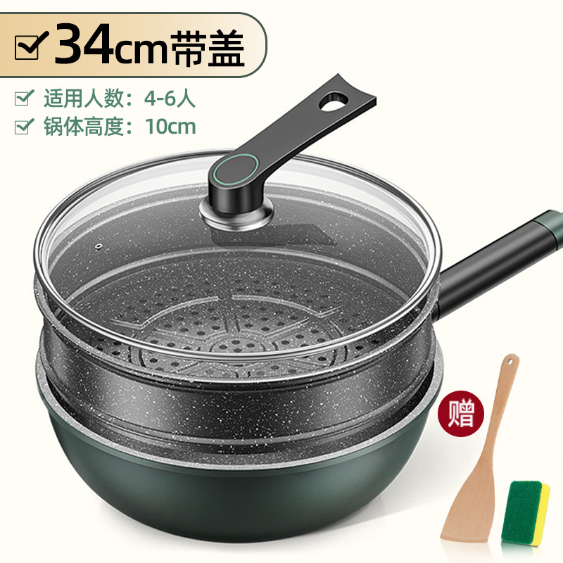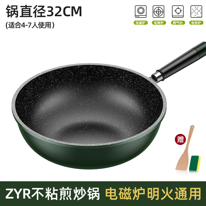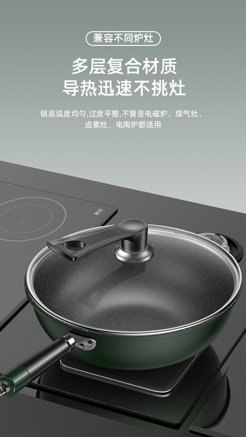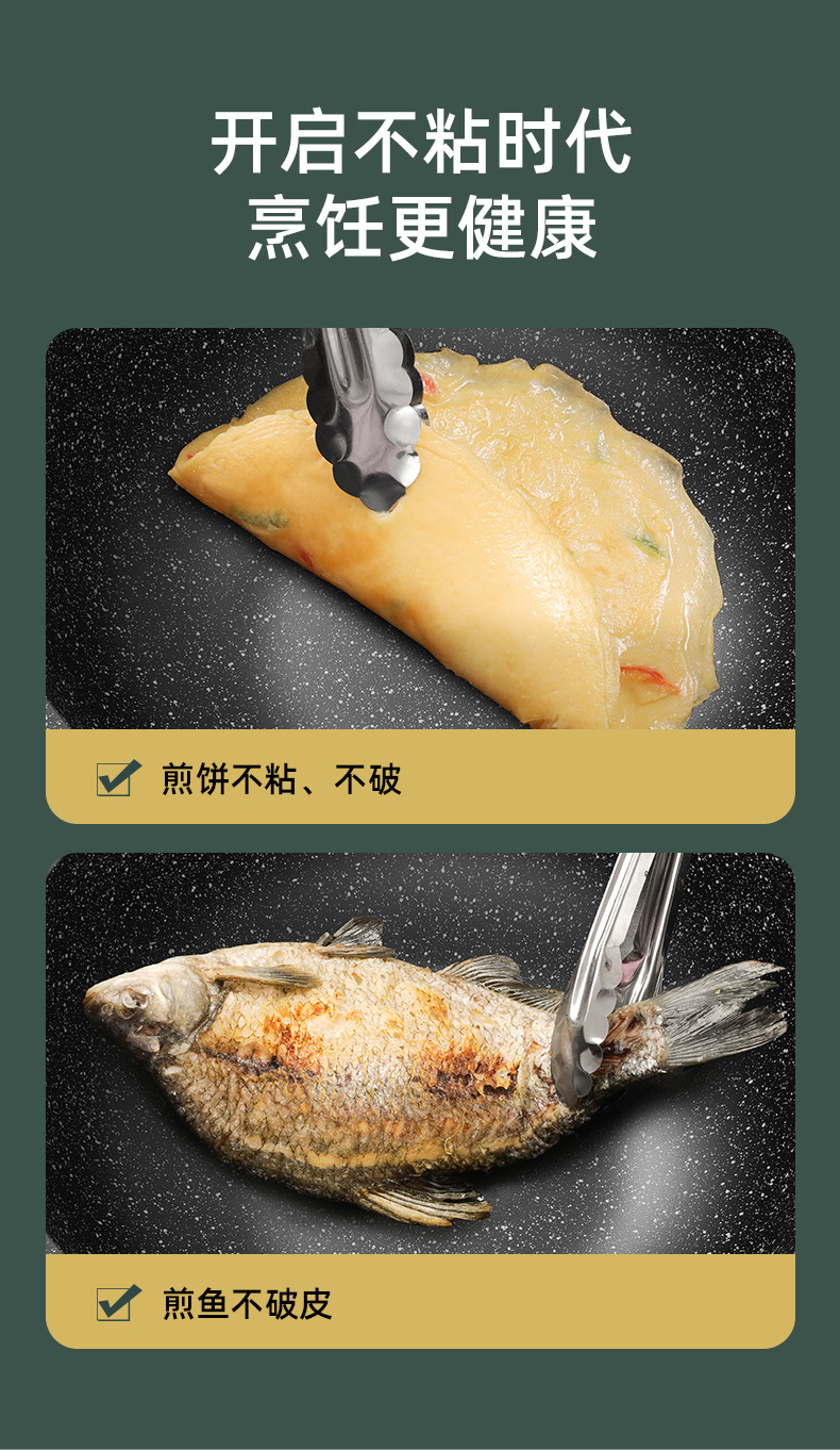 新款麦饭石不粘锅家用炒菜锅加厚一体铸平底锅通用炉灶精铁锅代发