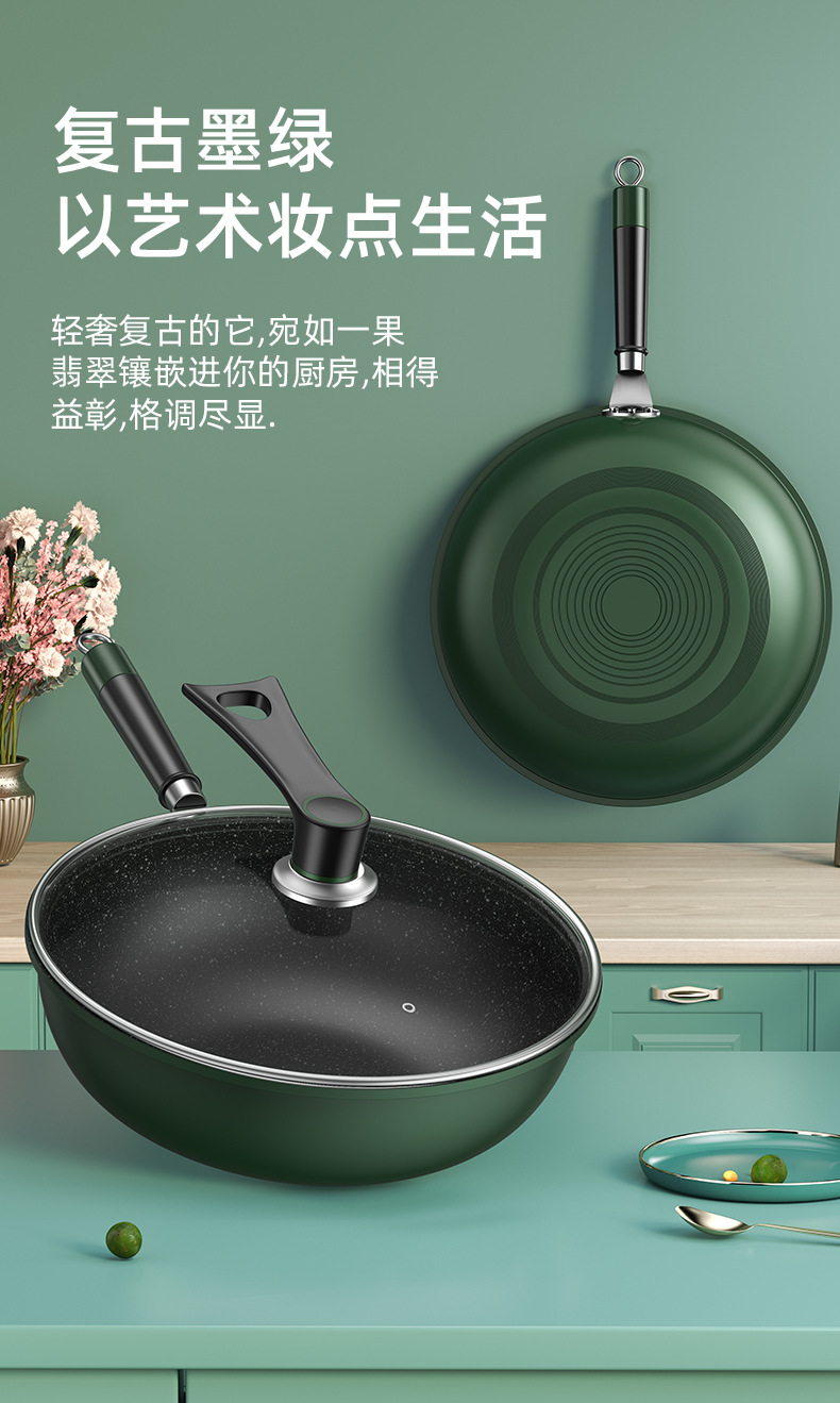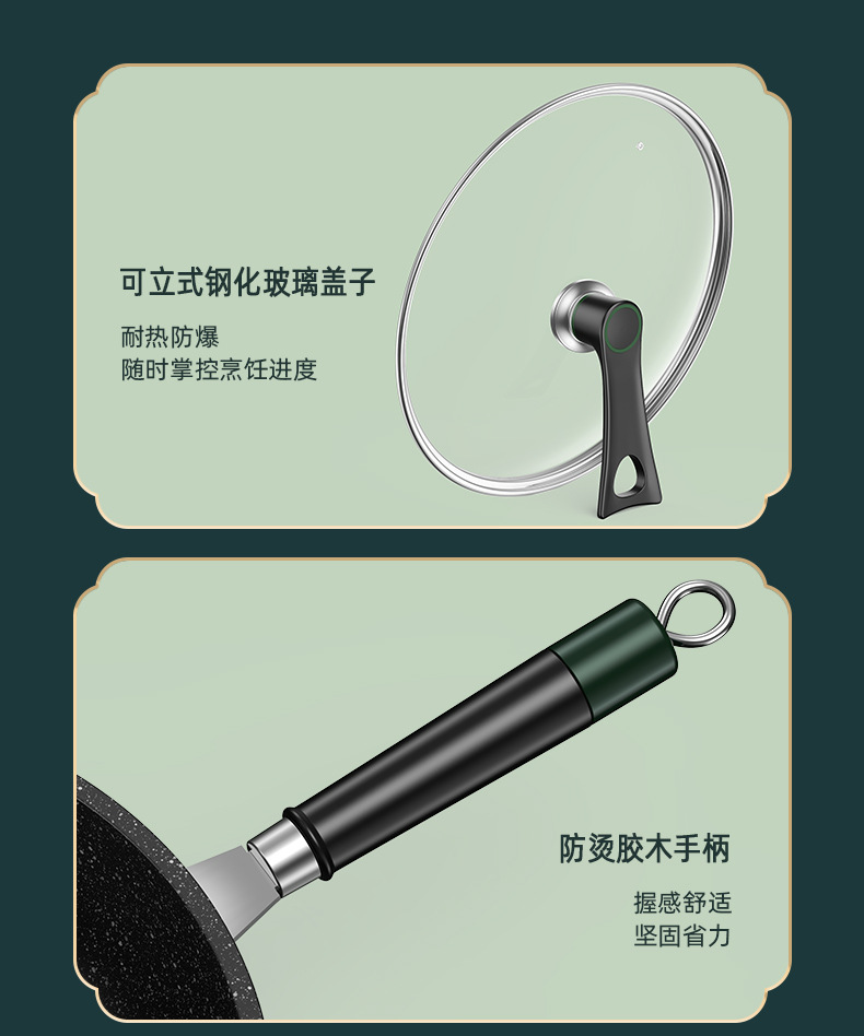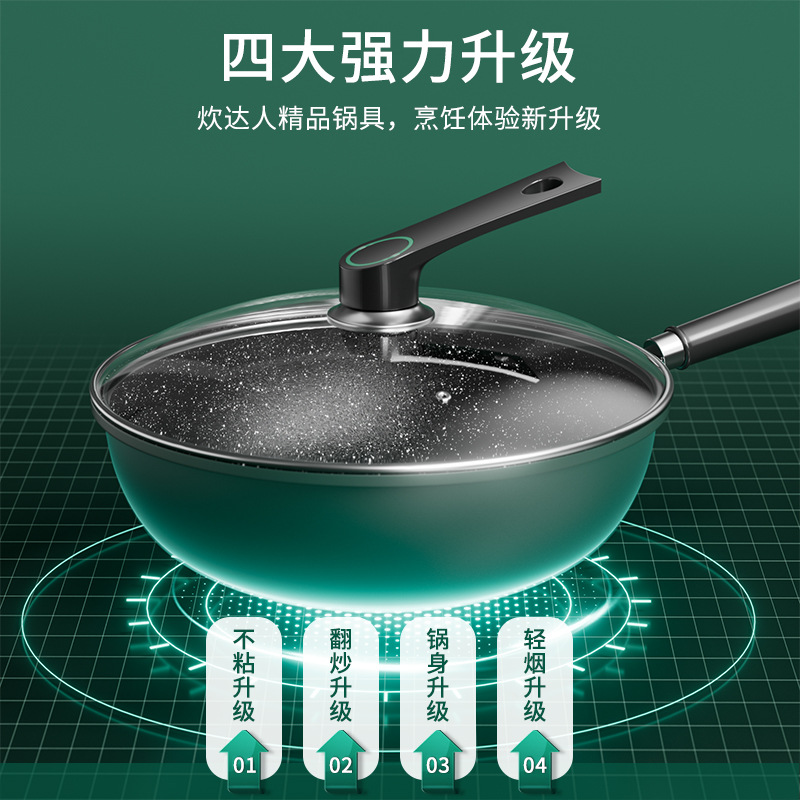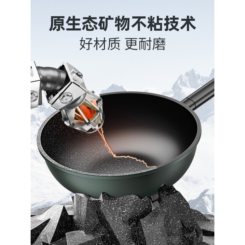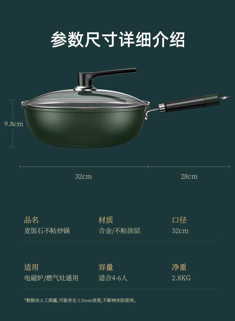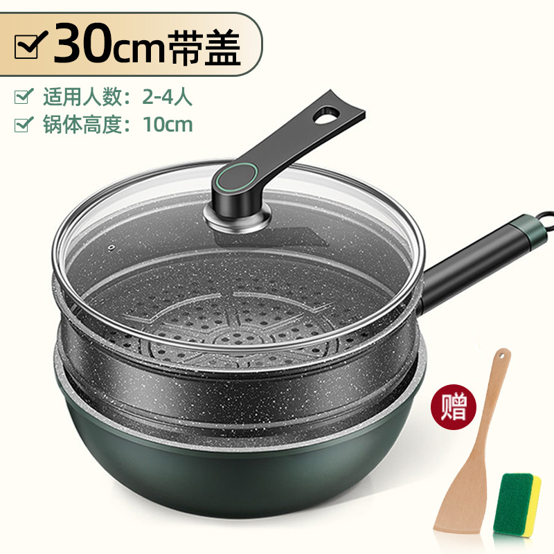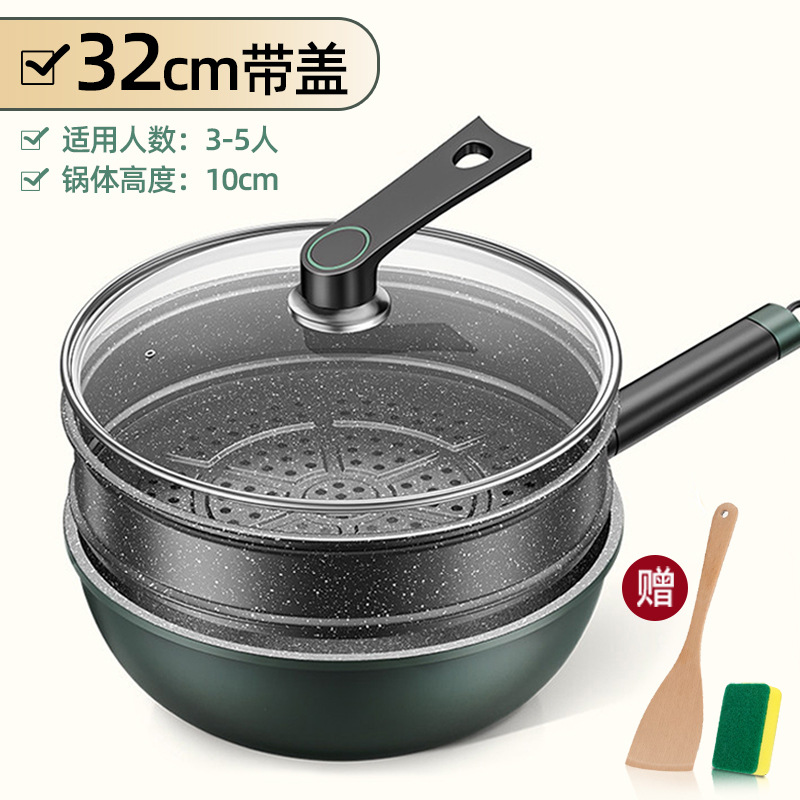 新款麦饭石不粘锅家用炒菜锅加厚一体铸平底锅通用炉灶精铁锅代发