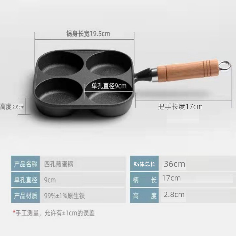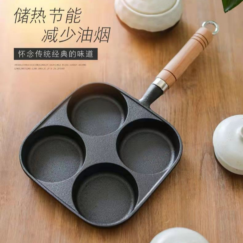 煎蛋锅铸铁四孔煎锅鸡蛋汉堡模具无涂层不易粘锅电磁炉燃气通用