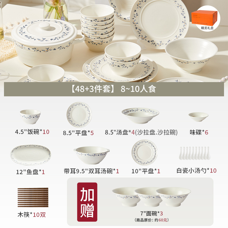 即物碗碟餐具套装釉下彩陶瓷碗盘子家用节日送礼碗盘组合乔迁礼品
