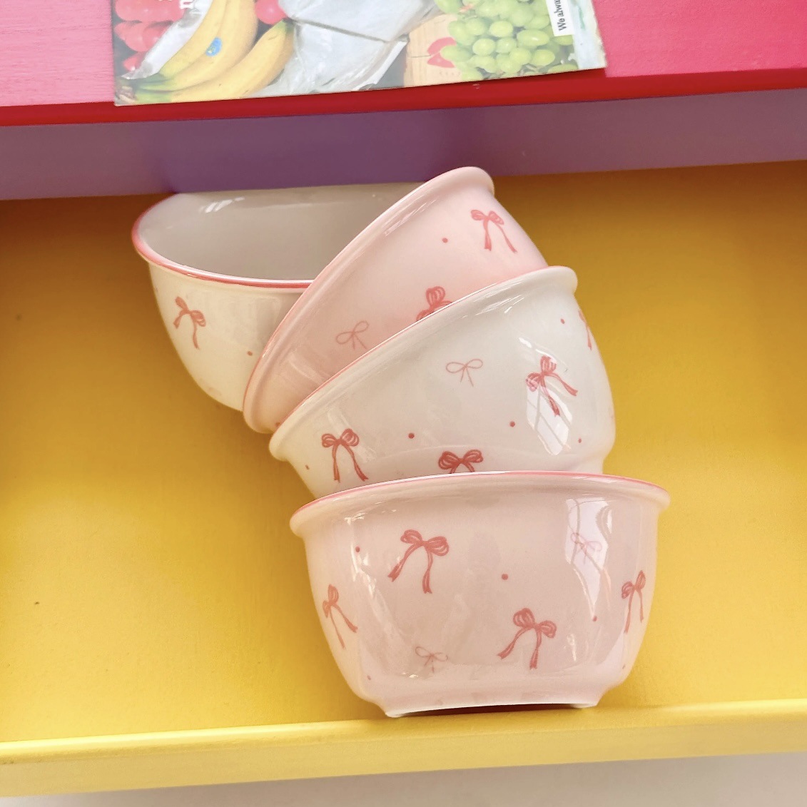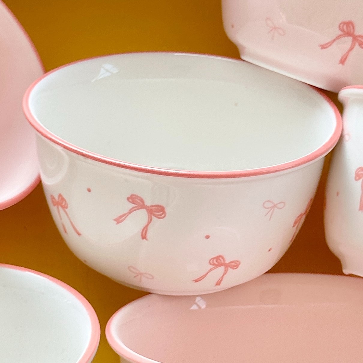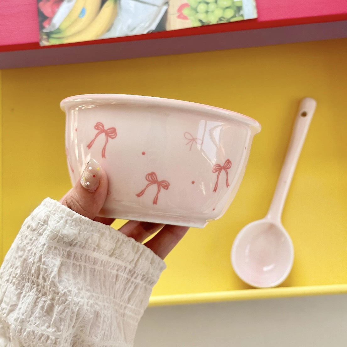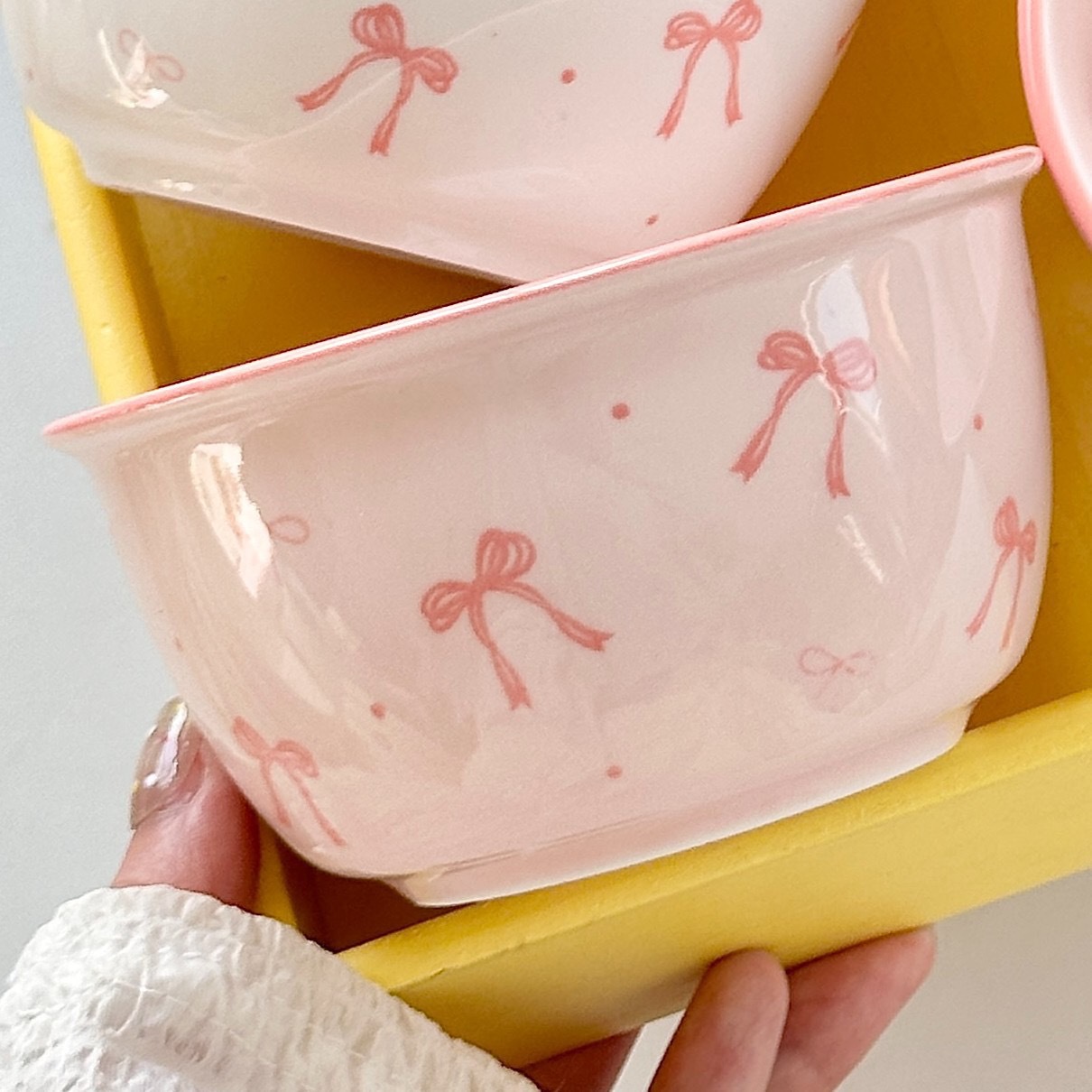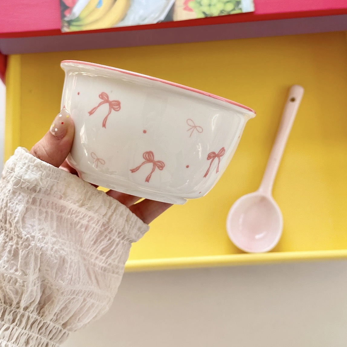 碗勺套装奶油蝴蝶结少女家用陶瓷釉下彩可爱高颜值餐具饭碗甜品碗