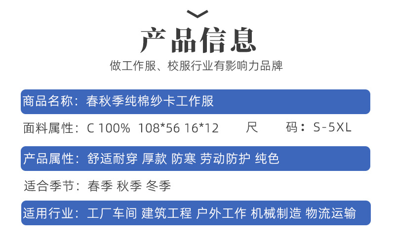 纯棉工作服套装秋季长袖劳保服焊工工厂车间厂房耐磨耐脏劳保工装