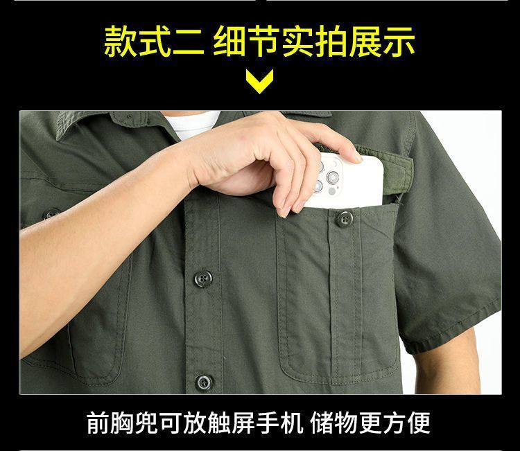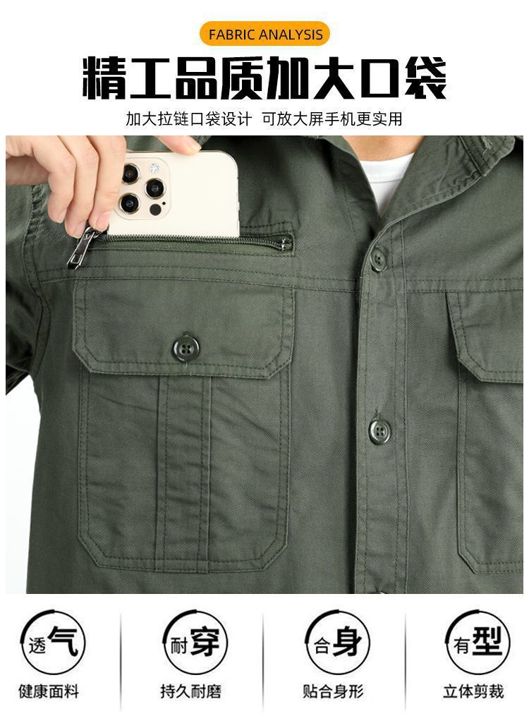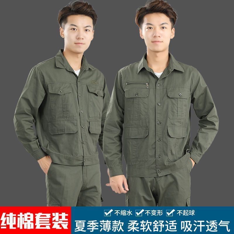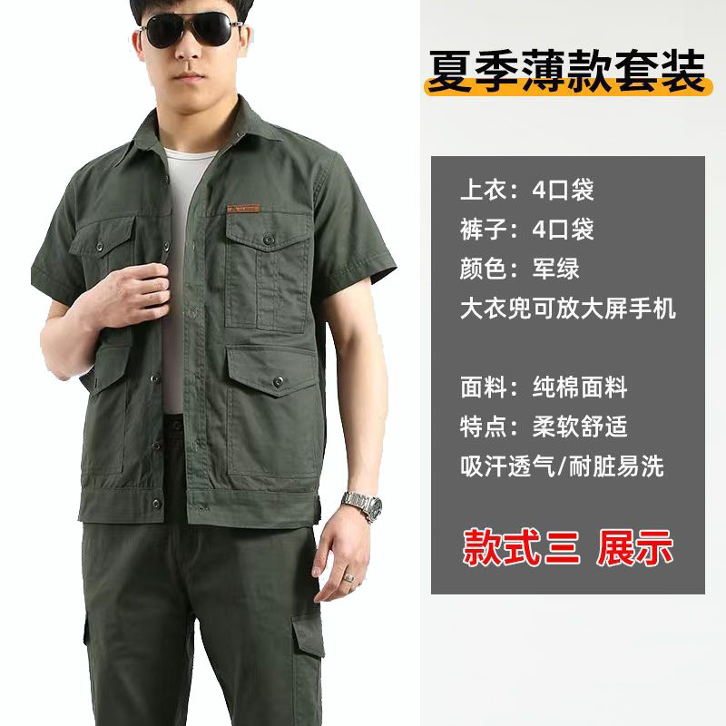 夏季工作服套装男电焊防烫工装长袖薄款透气短袖劳保服可绣字