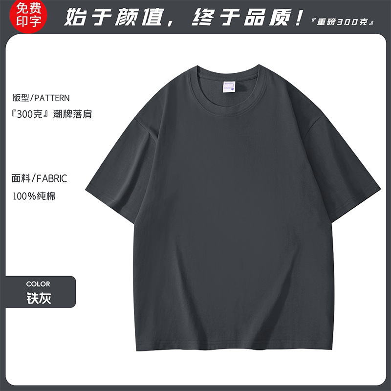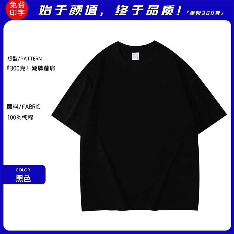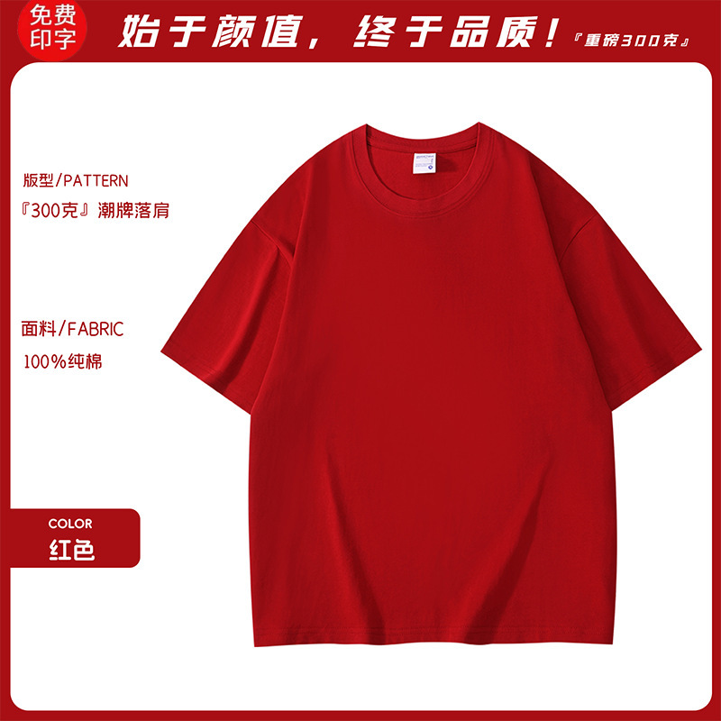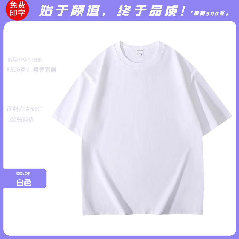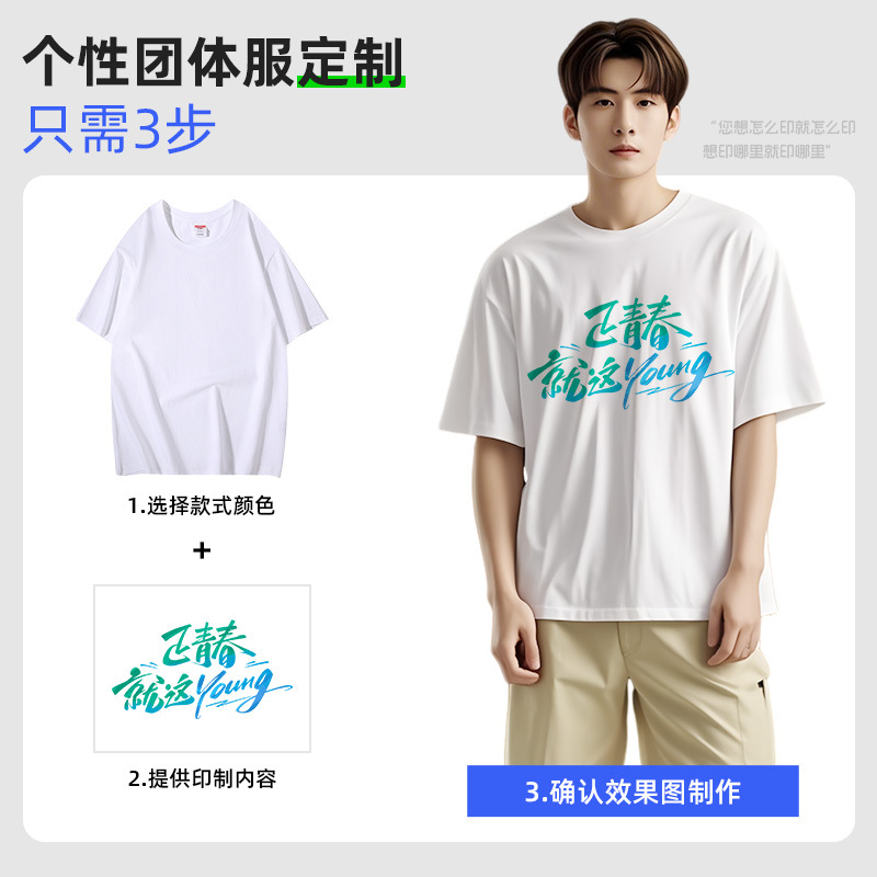 工作服广告衫夏季纯棉落肩圆领短袖男女同款班服t恤定制加印logo