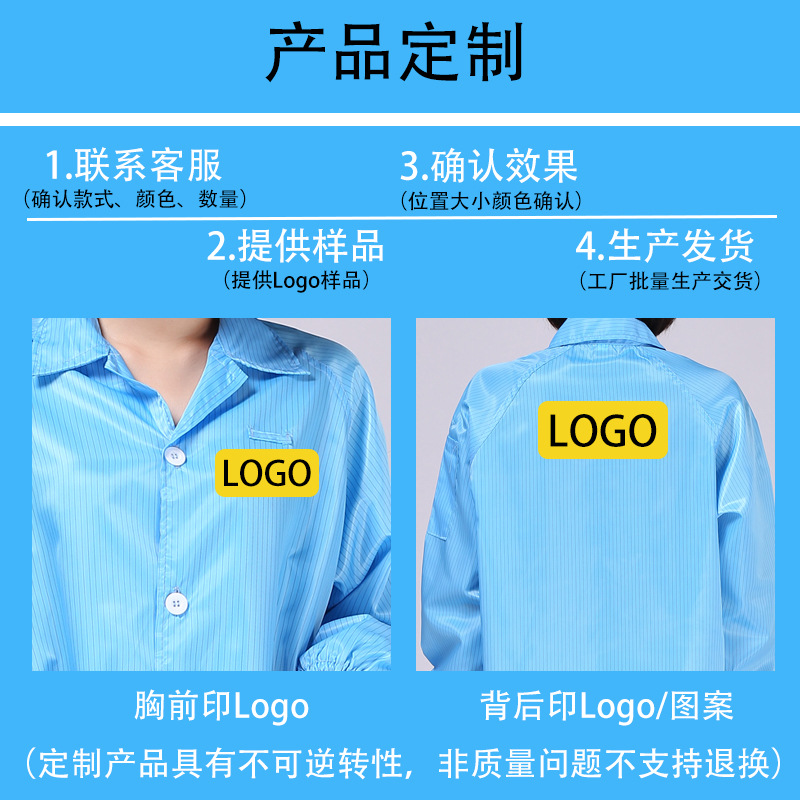 防静电服长袖大掛定制logo电子厂无尘车间蓝色白色男女工作静电衣