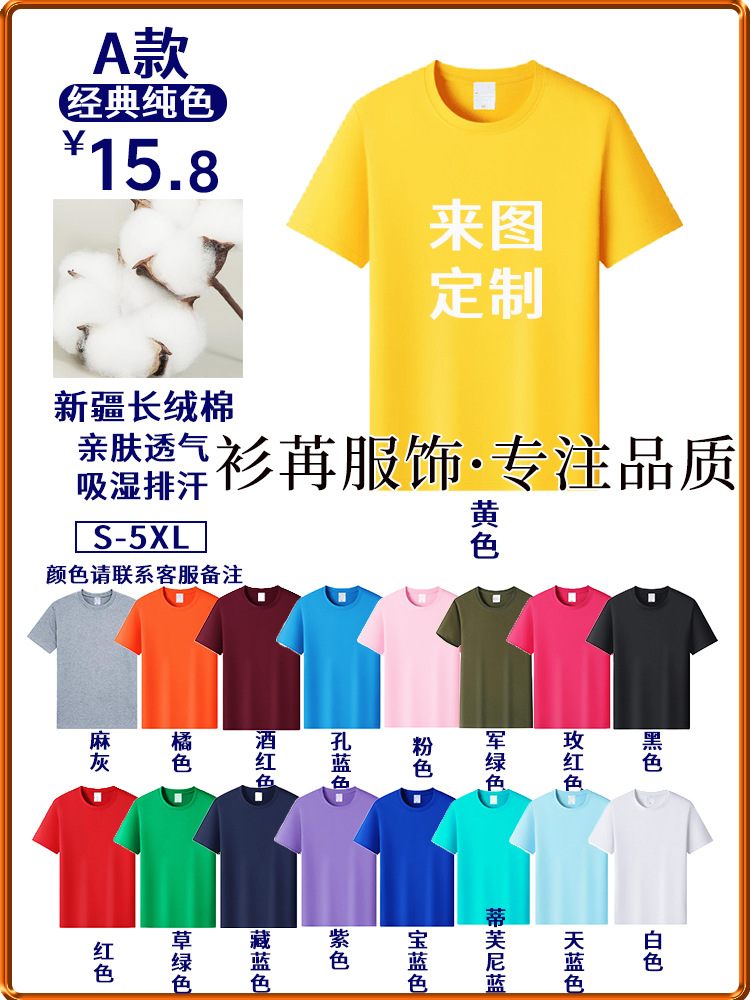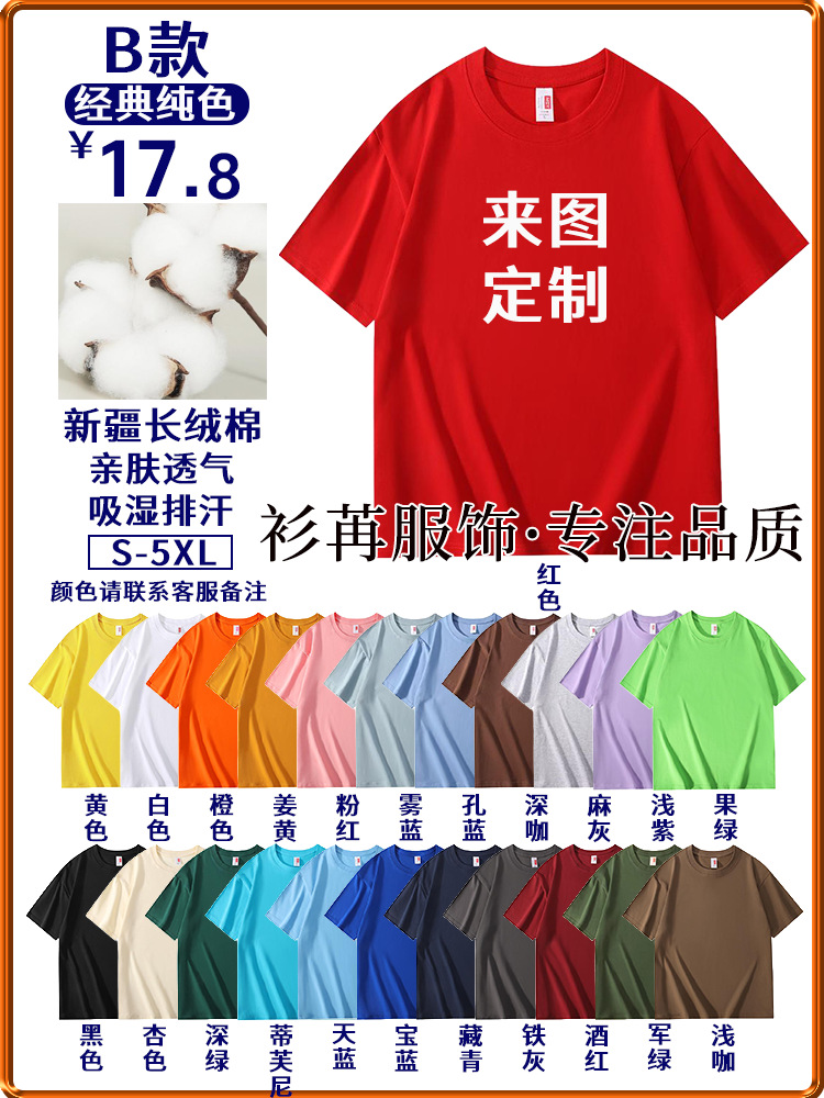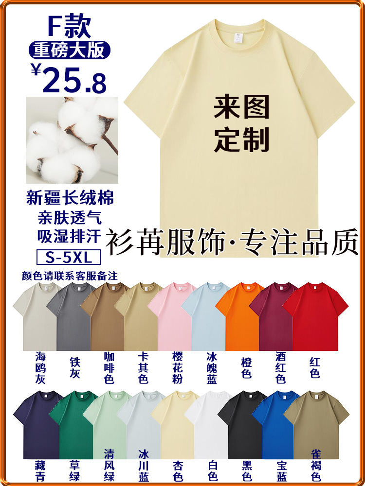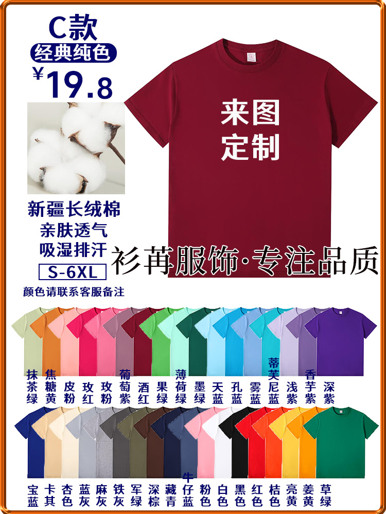 纯棉t恤定制工作服文化衫重磅短袖刺绣印logo圆领班服广告衫批发