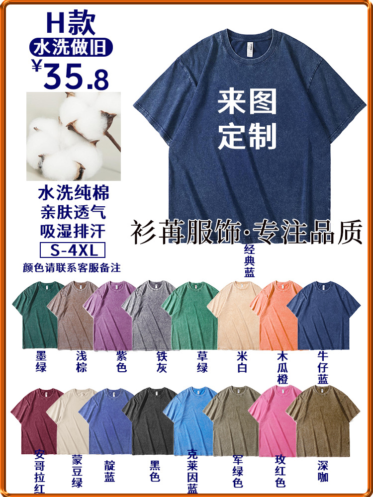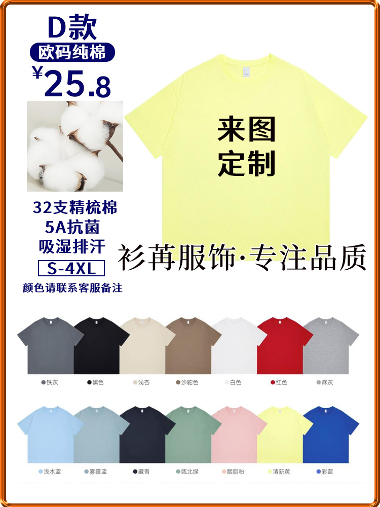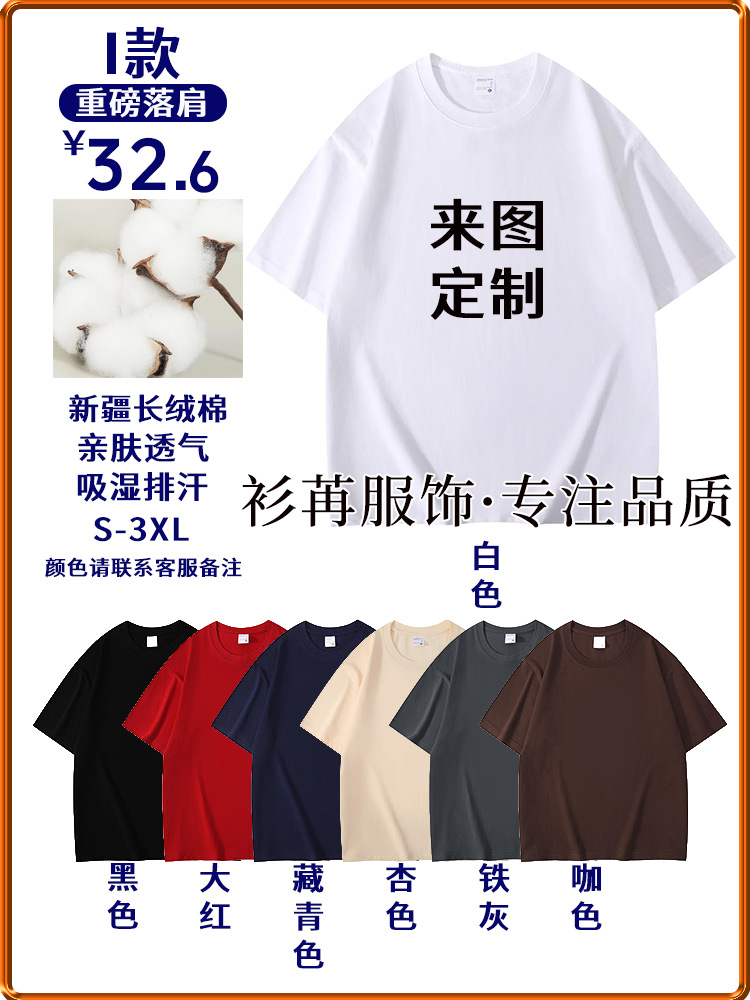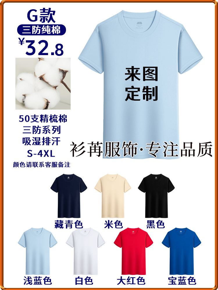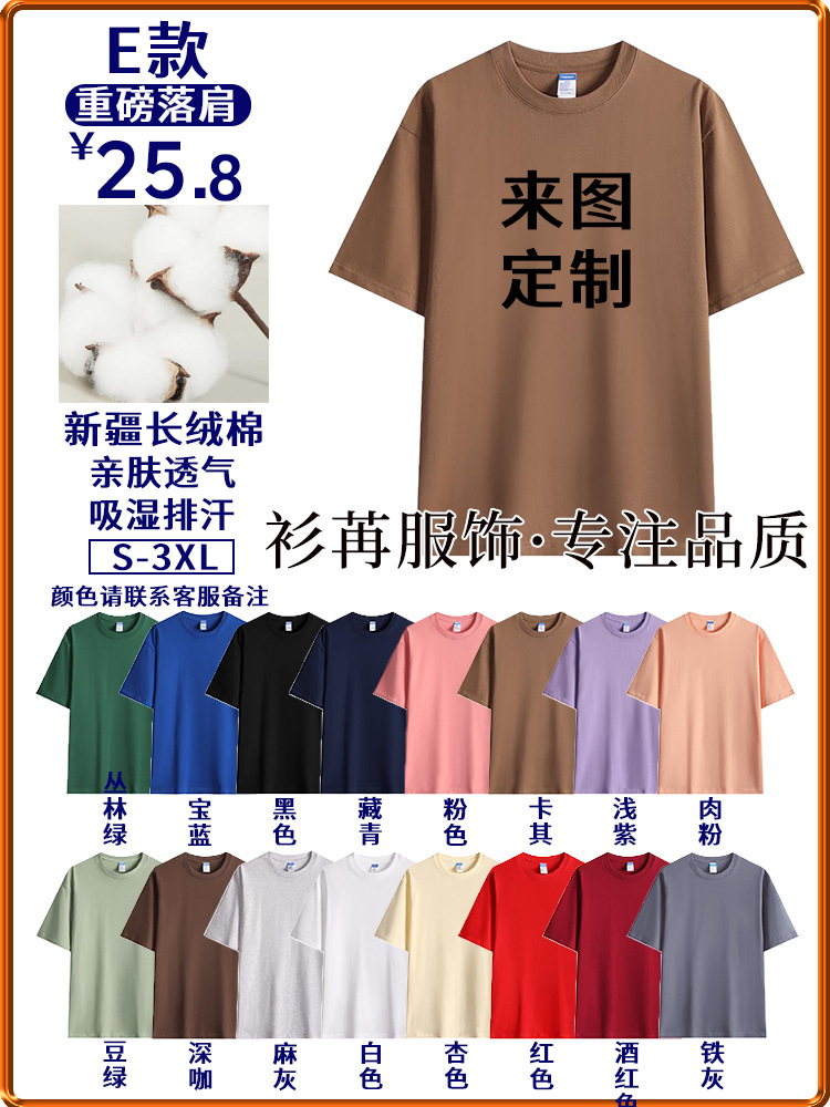 纯棉t恤定制工作服文化衫重磅短袖刺绣印logo圆领班服广告衫批发