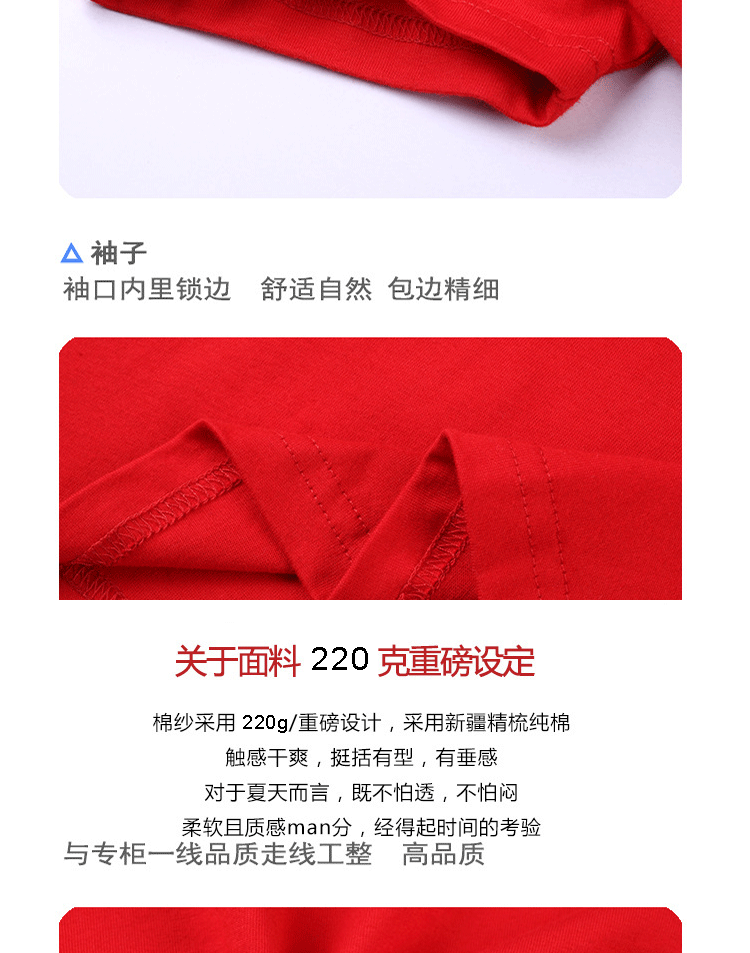 220克圆领广告衫纯棉短袖t恤定制文化衫工作服印字logo团体服刺绣