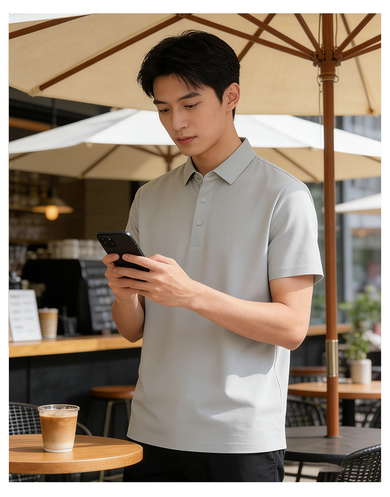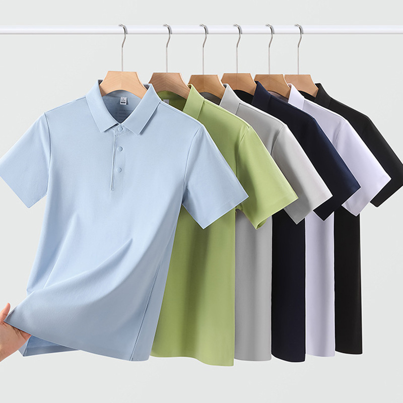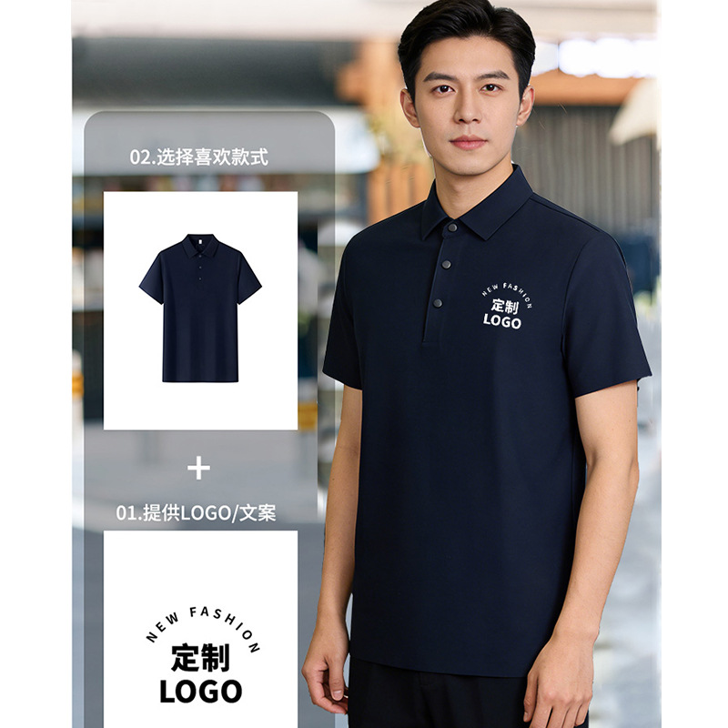 80支丝光液氨马球衫跨境商务翻领t恤短袖纯棉polo衫定制男高级感