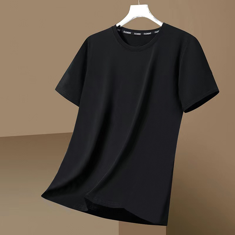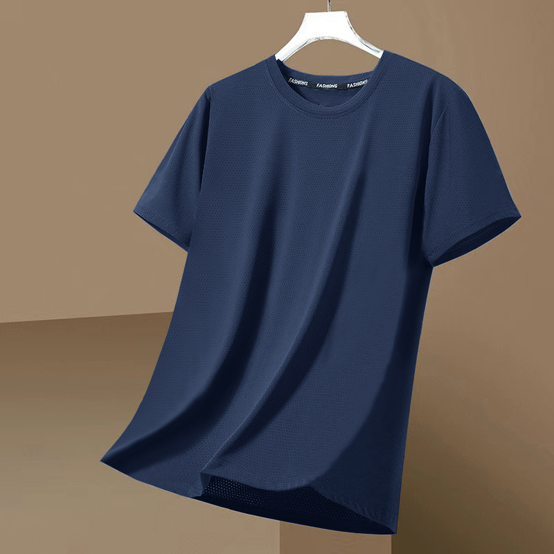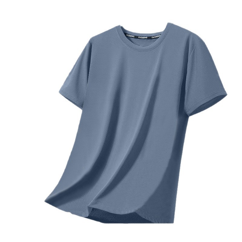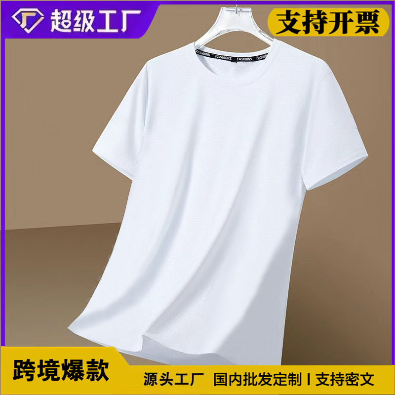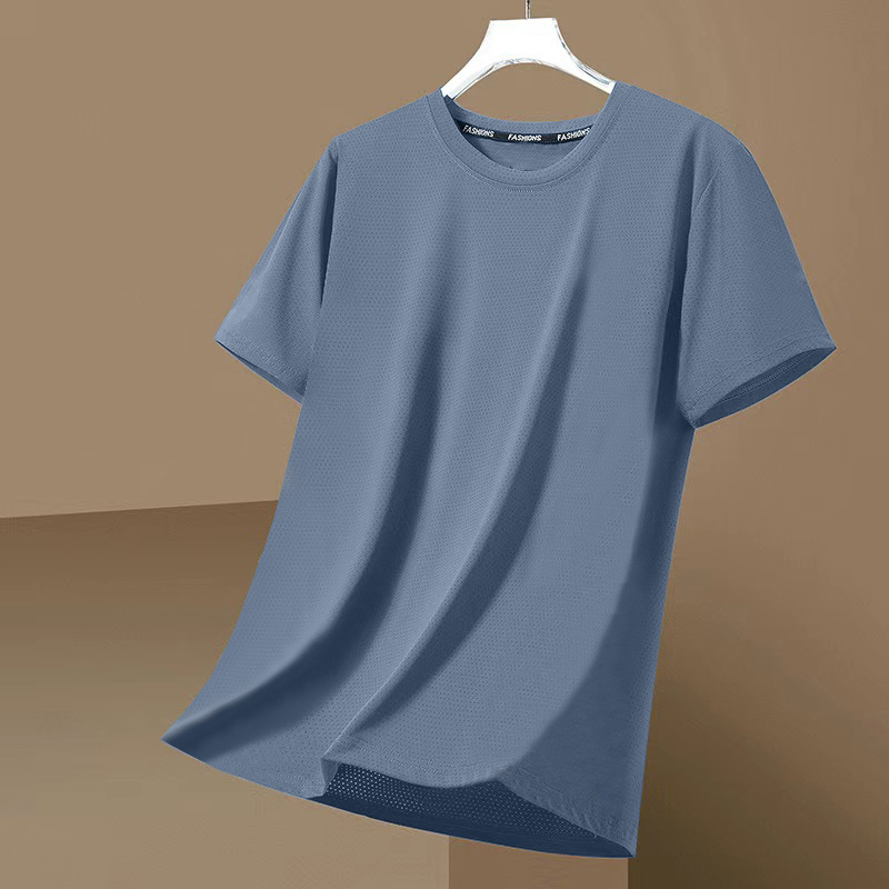 跨境外贸网眼短袖男士休闲纯色透气潮流凉感冰丝速干大码圆领T恤