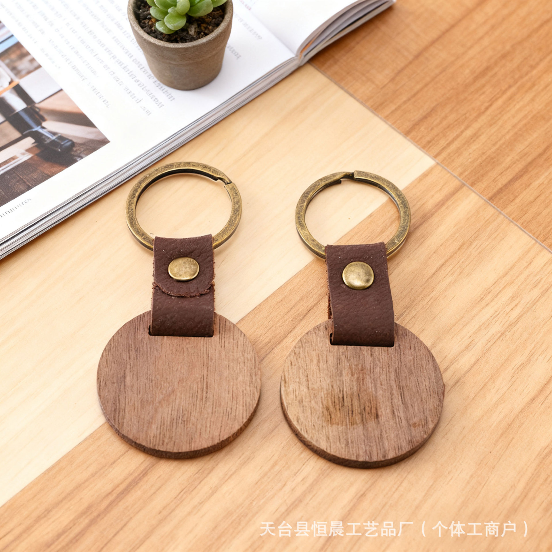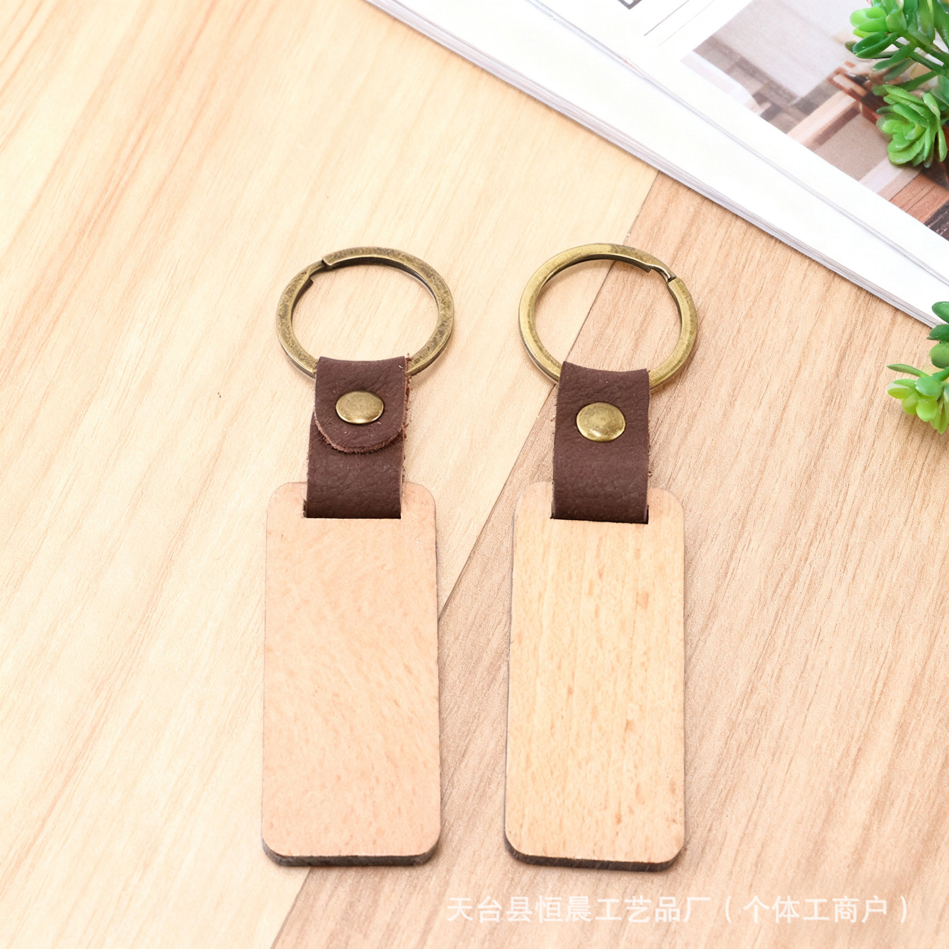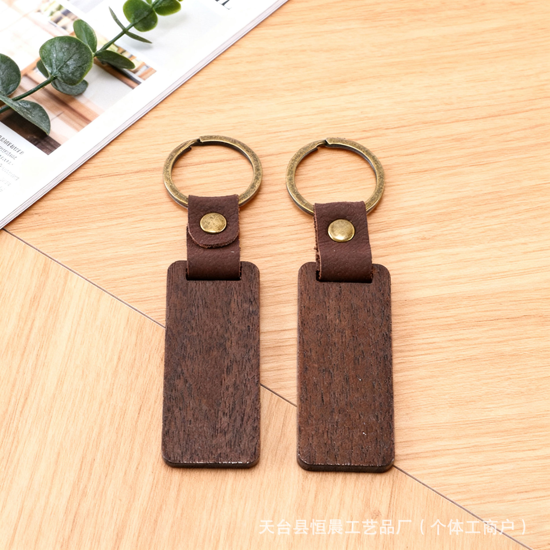 跨境亚马逊爆款木质钥匙扣黑胡桃木钥匙扣竖条榉木钥匙扣激光刻字