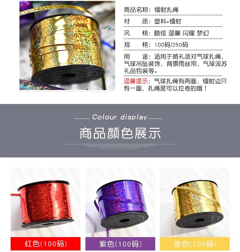 婚礼儿童生日派对气球绳子丝带飘带雨丝彩带流苏装饰镭射扎带绑绳