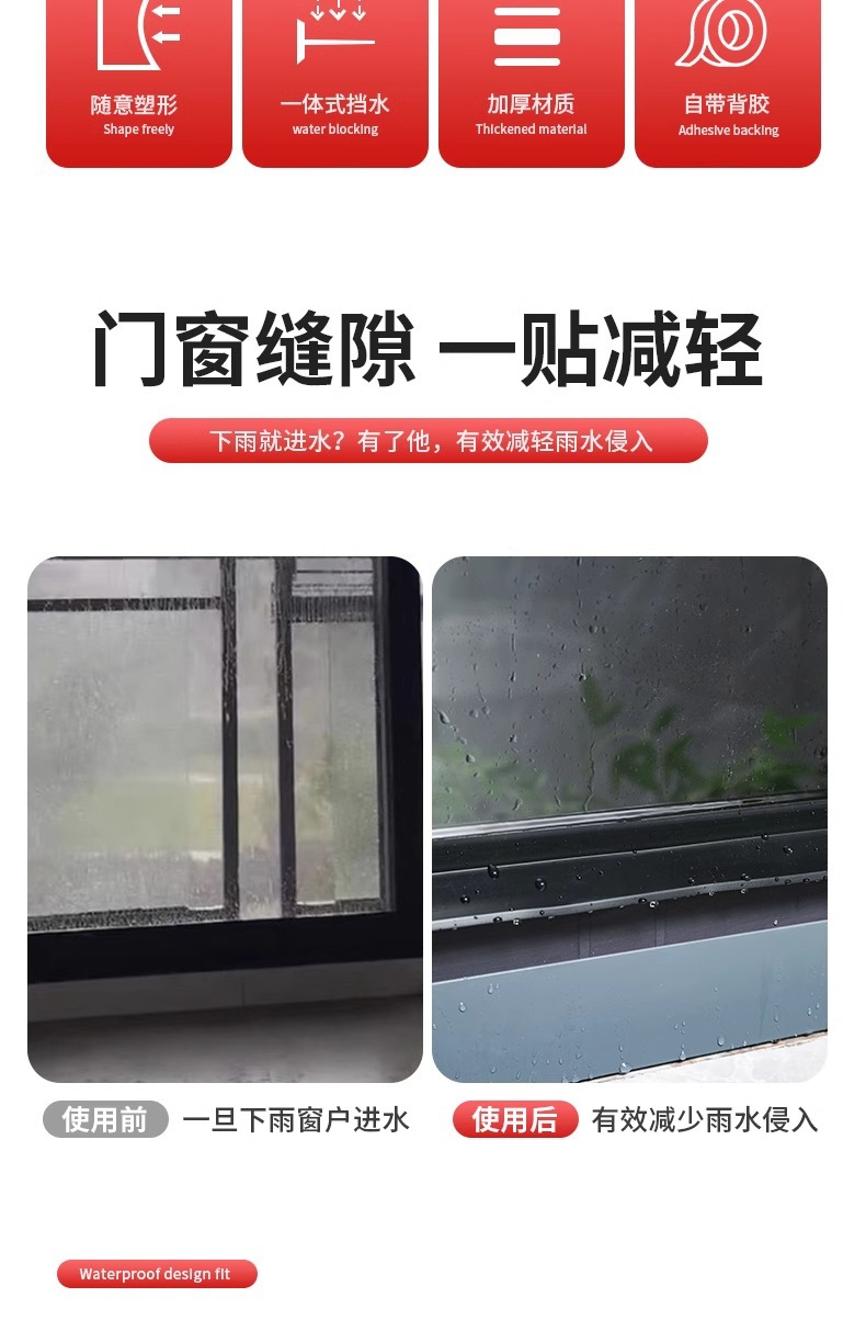 窗户挡水条止水条有效阻水窗扇防雨水倒灌窗台挡水窗缝阻水条