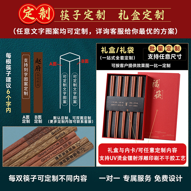 厂家直销鸡翅木筷子无漆无蜡实木家用批发刻字防滑酒店饭店木中式