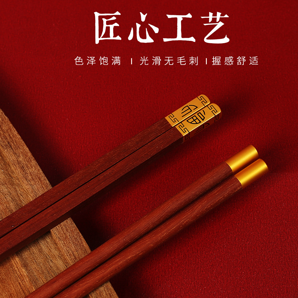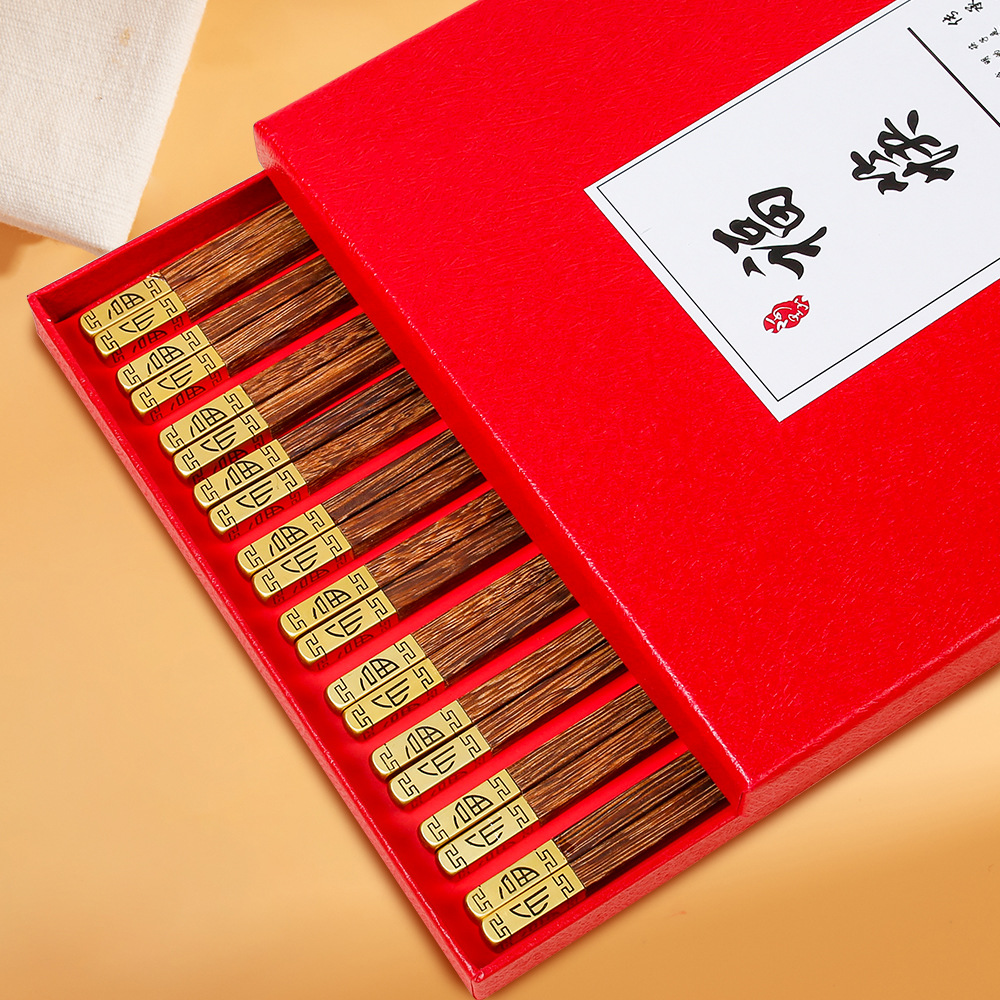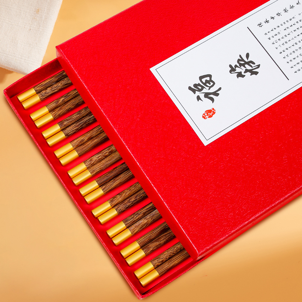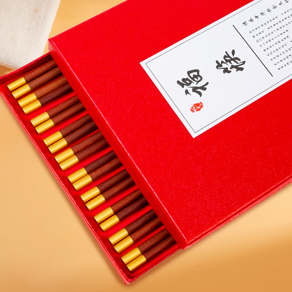 家用鸡翅木筷子一人一筷筷子套装红檀木筷子礼盒新年筷子无漆无蜡