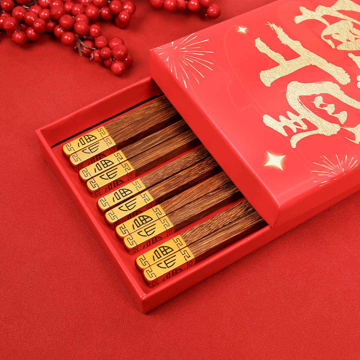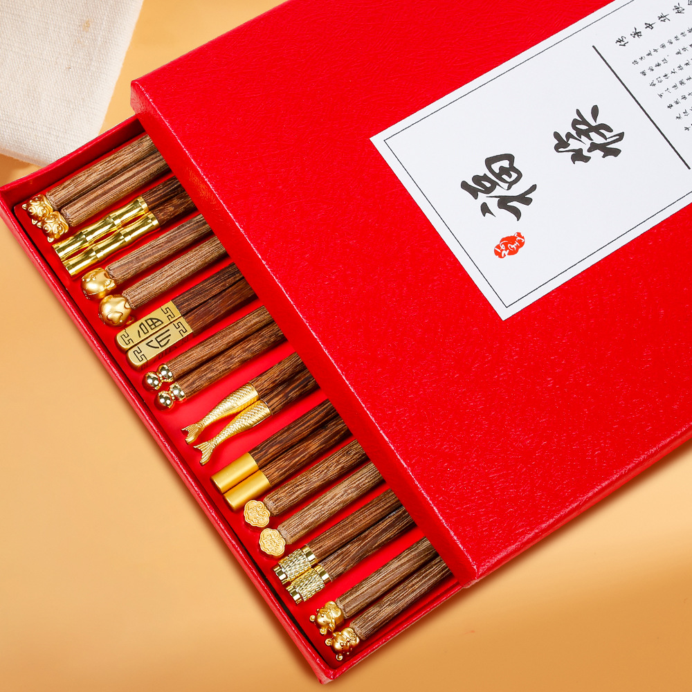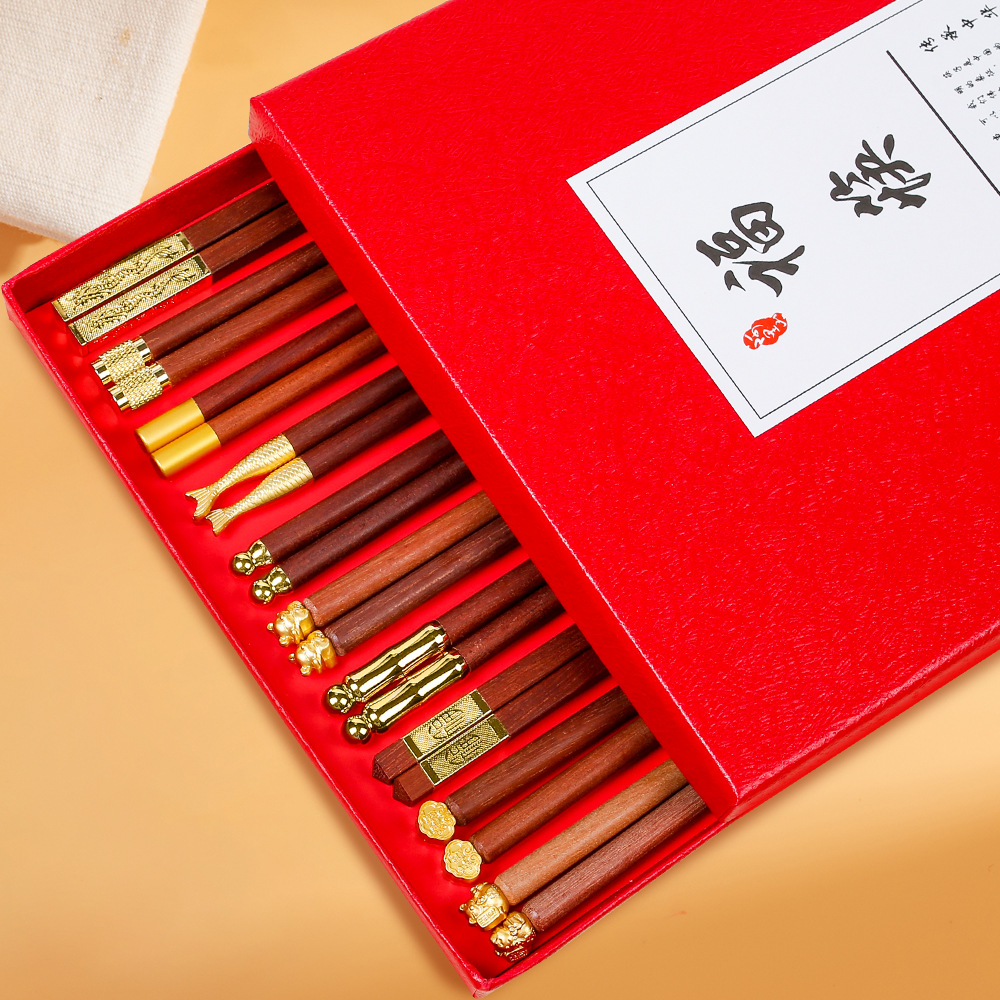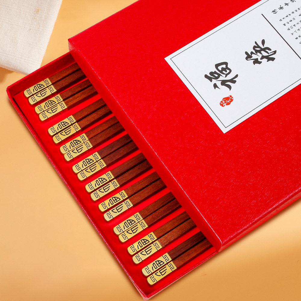 家用鸡翅木筷子一人一筷筷子套装红檀木筷子礼盒新年筷子无漆无蜡