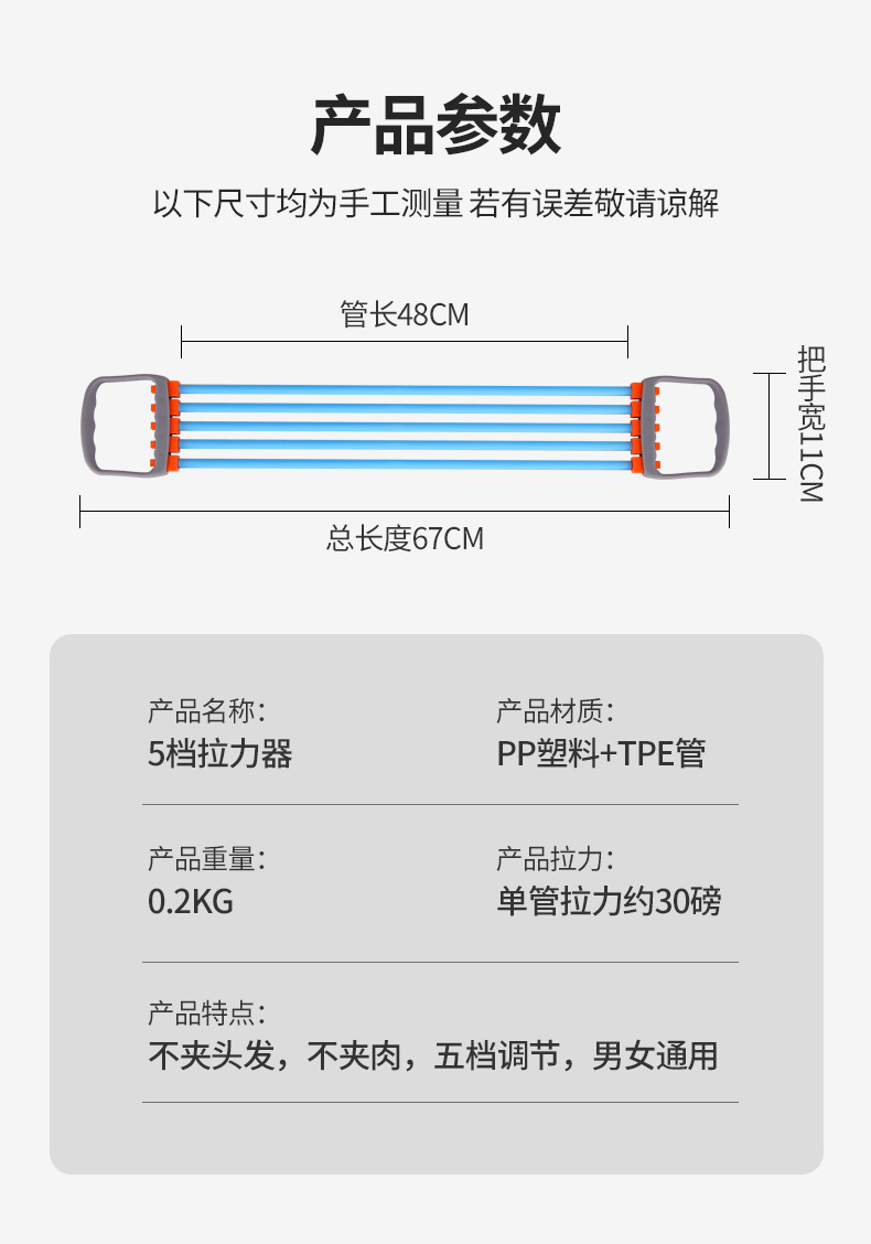 【美背塑形】美体拉力器简约开肩美背可调节高弹TPE软管防滑舒适