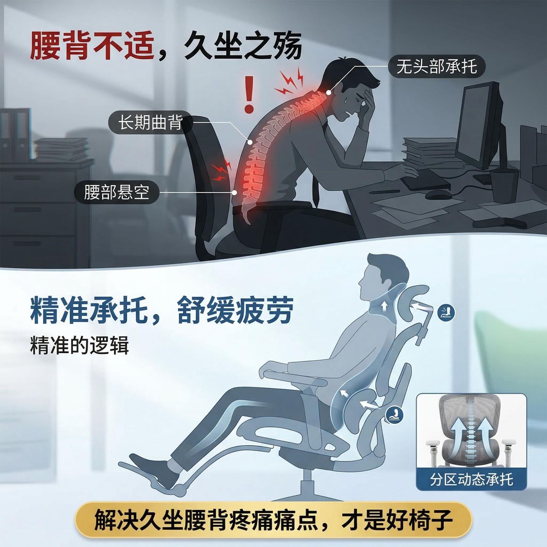 智能追腰人体学椅电脑椅联动气动撑腰办公椅子久坐老板学生电竞椅