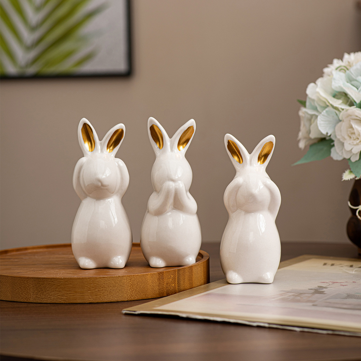 不听不看不说兔子造型北欧家居摆件客厅电视柜复活节跨境热卖饰品