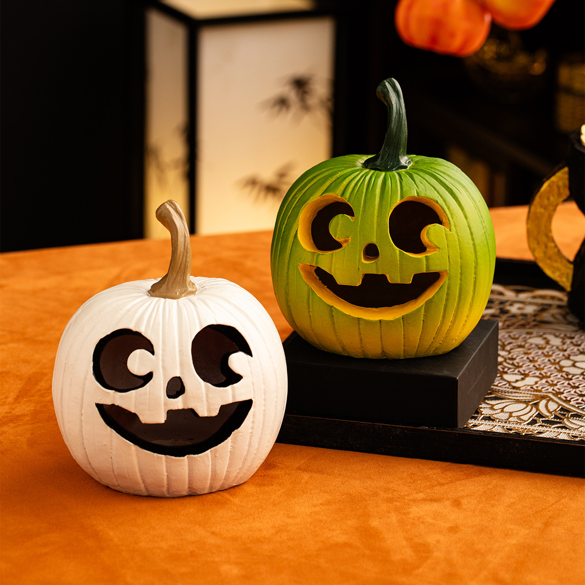 跨境万圣节南瓜摆件四色彩色创意装饰树脂摆件家居桌面丰收节摆件