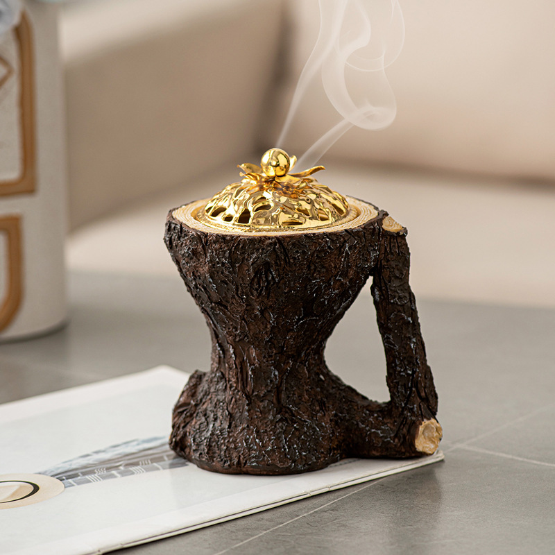 跨境中东香薰炉树皮纹路造型树脂香炉桌面客厅装饰创意阿拉伯节日