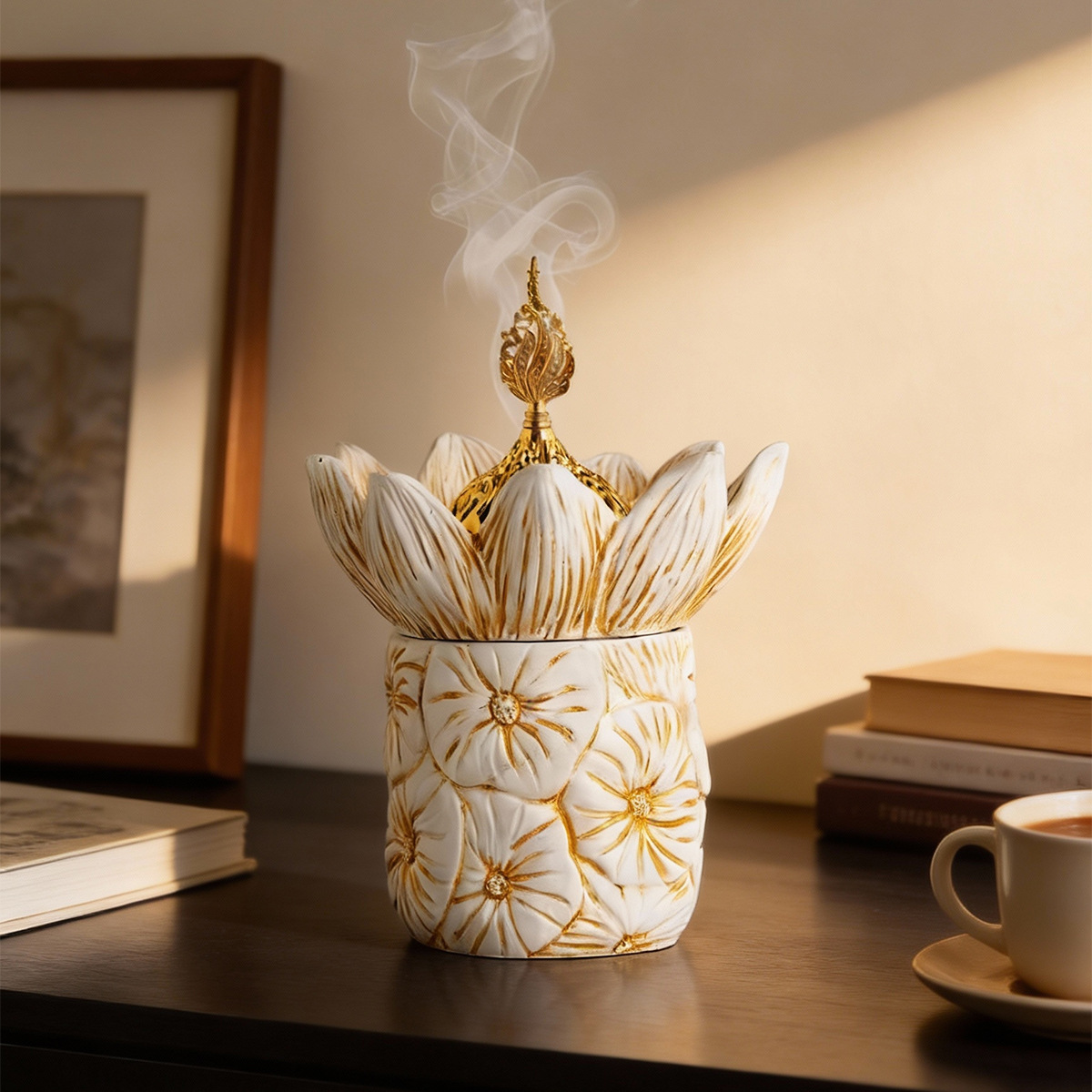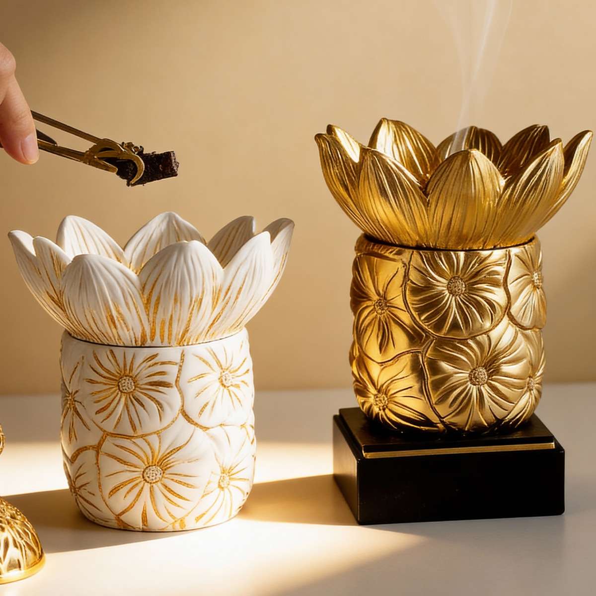 cross-border golden middle east arab small incense burner incense burner cone incense sandalwood stove creative flower-shaped handheld incense burner jar