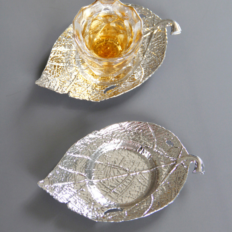 北欧枫树叶形金色银色金属杯垫杯托中东阿拉伯杯垫小碟子一件代发