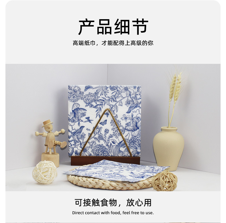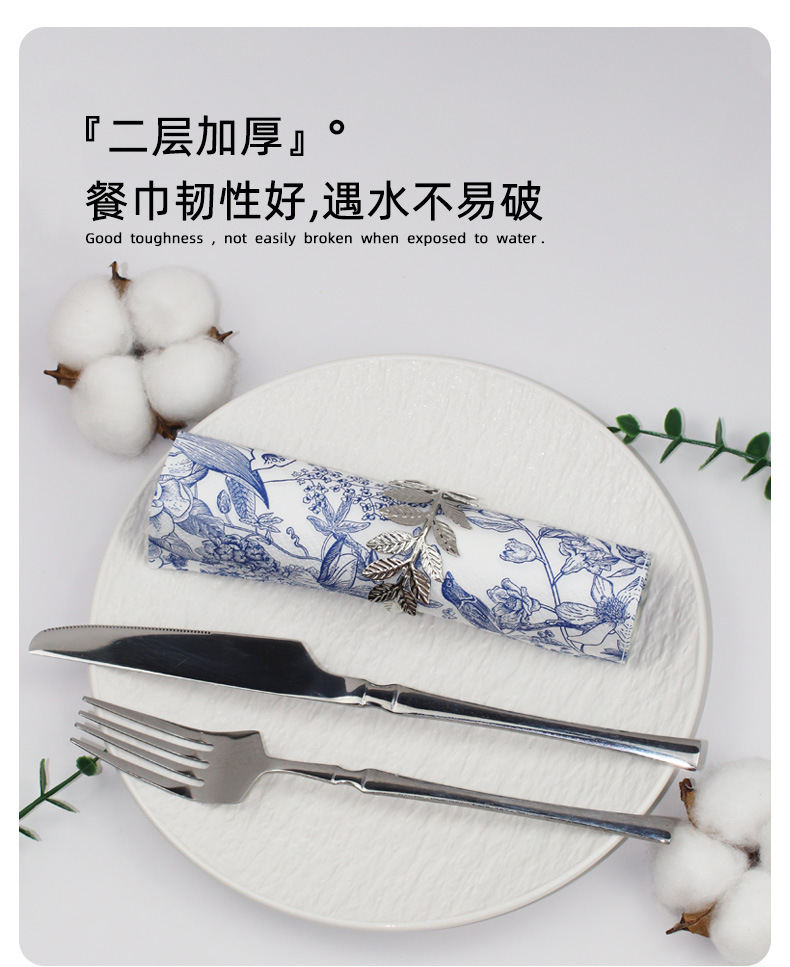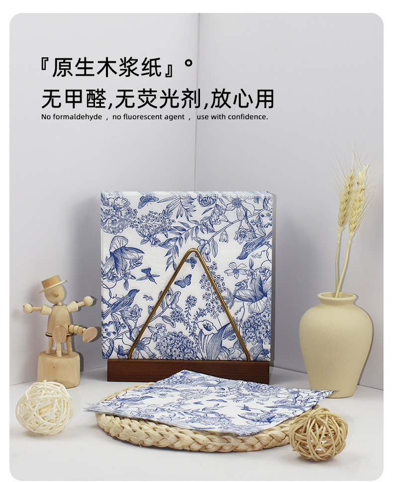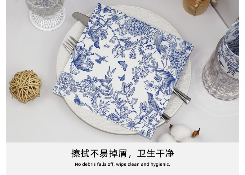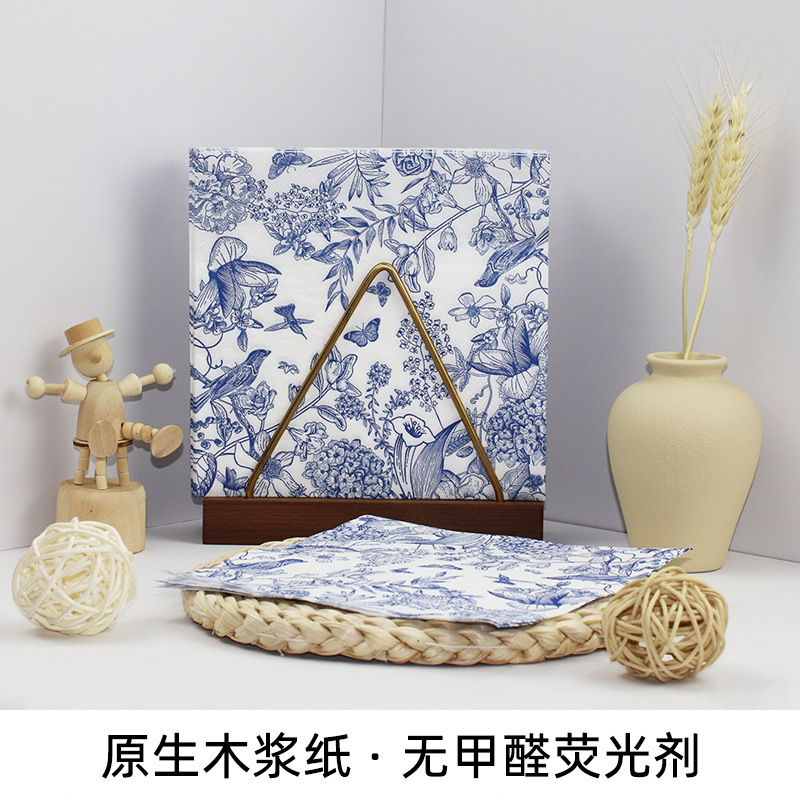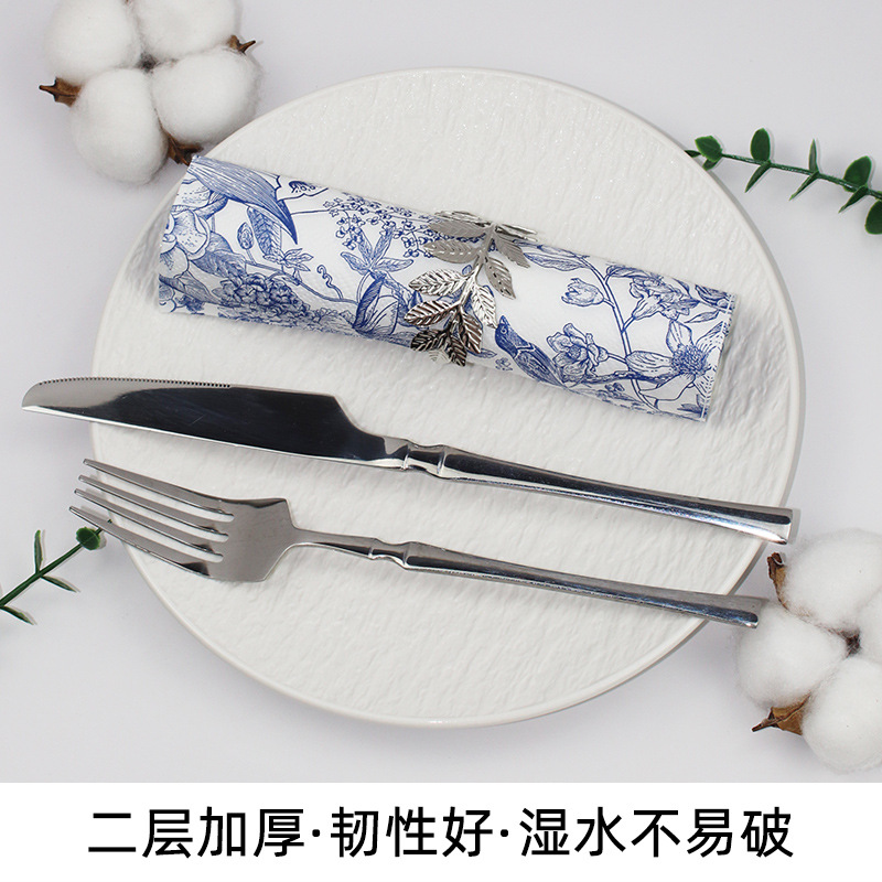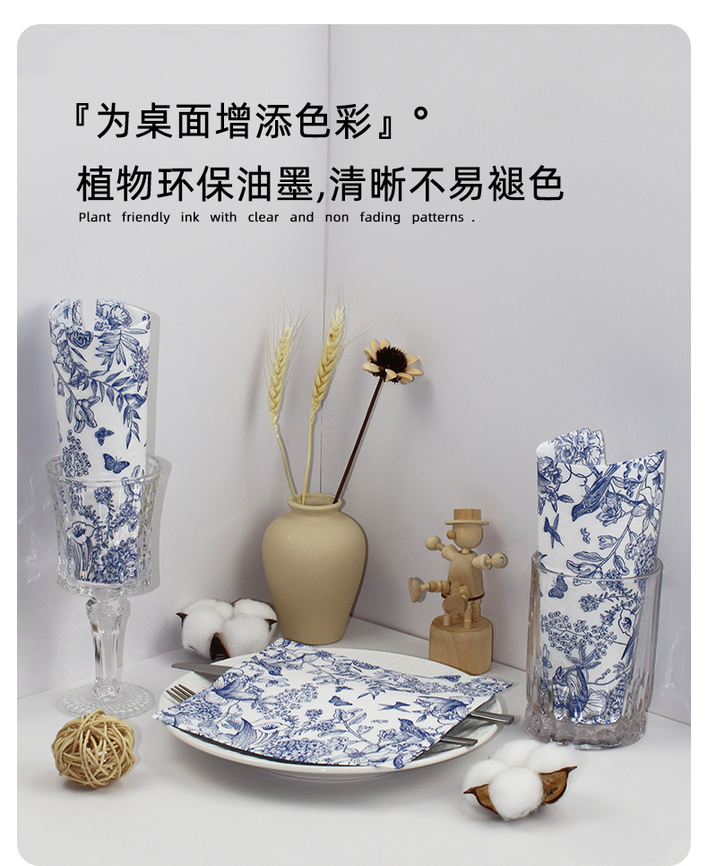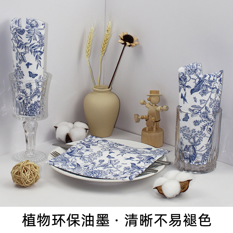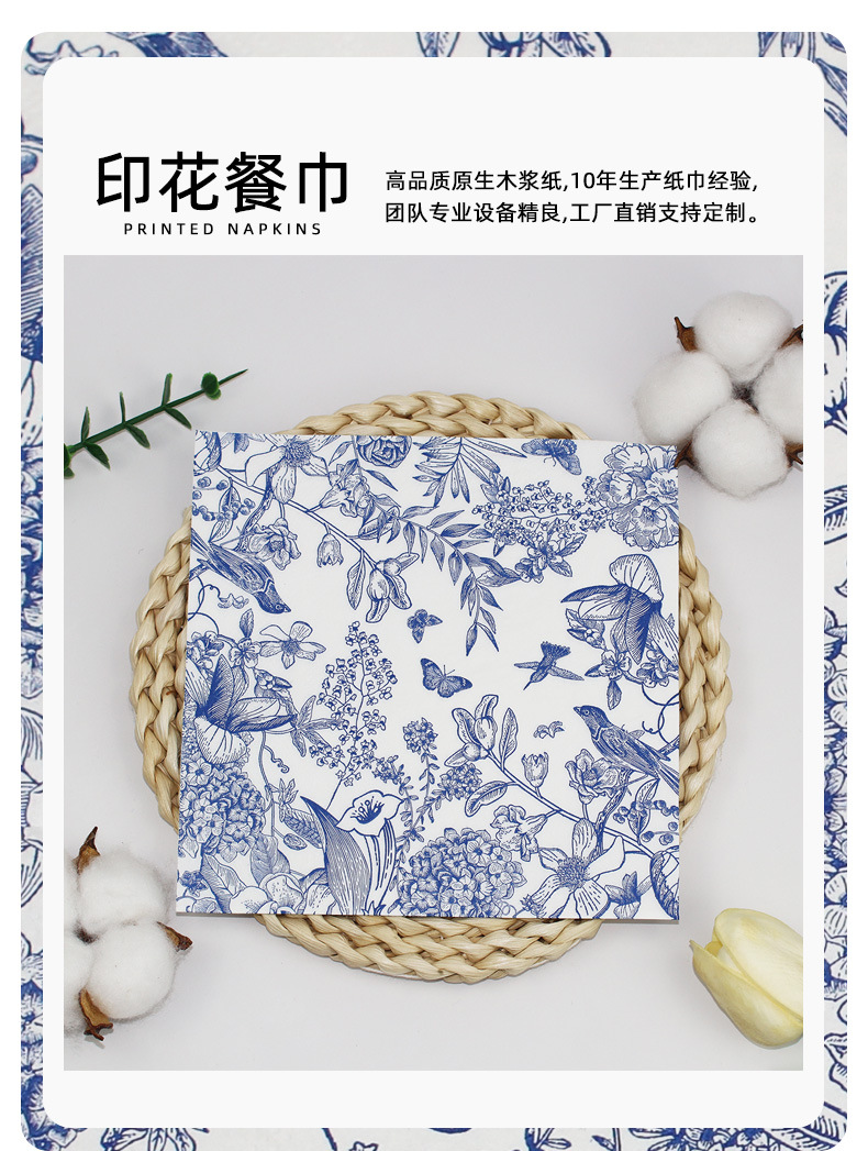 青花瓷餐巾纸单色素描花鸟印花酒店主题餐厅聚会一次性纸巾工厂