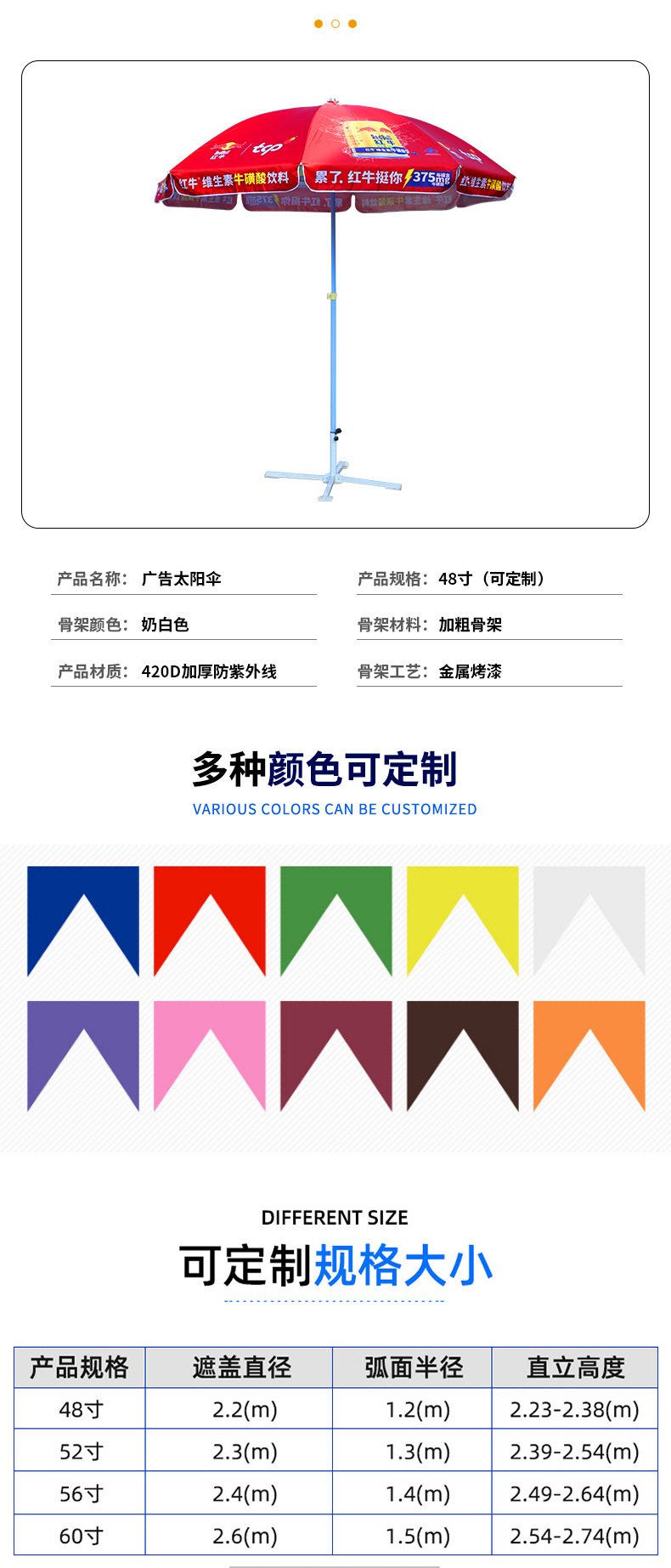 | 56寸 遮盖直径2.4M 弧面半径1.4M 直立高度2.49-2.64M | USD $12.93 | 9999 piece available |