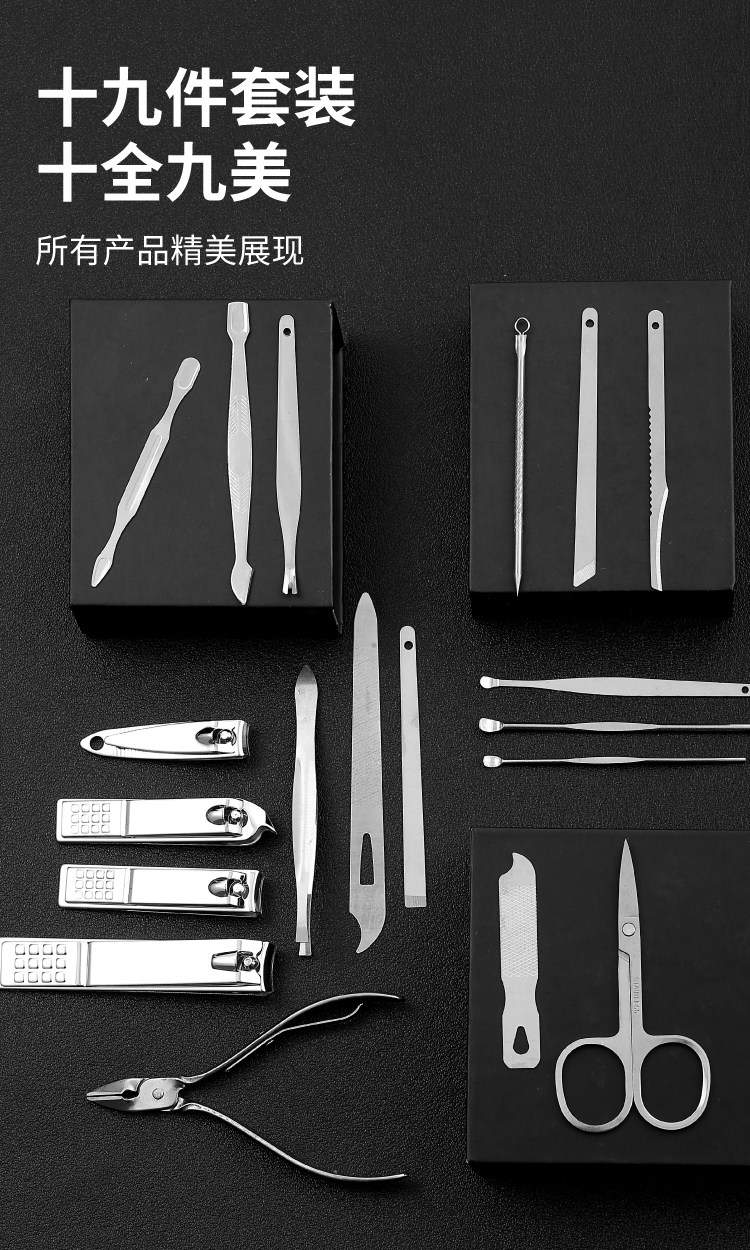 黑金刚指甲刀套装指甲剪修脚刀剪刀指甲钳掏耳勺大号尖嘴钳