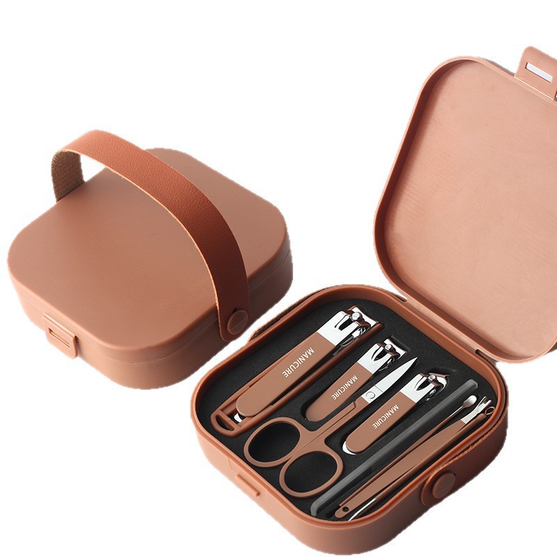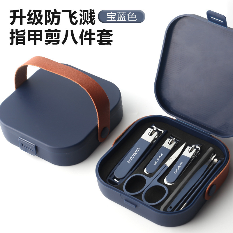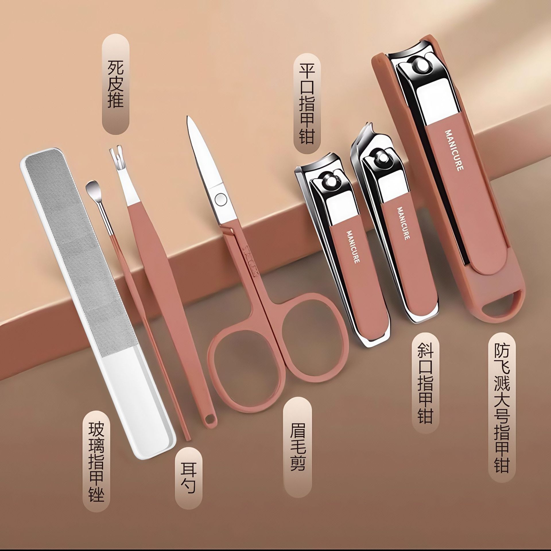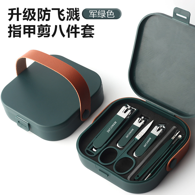 新款手提防飞溅8件套指甲刀套装跨境现货棕色指甲剪套盒印刷logo