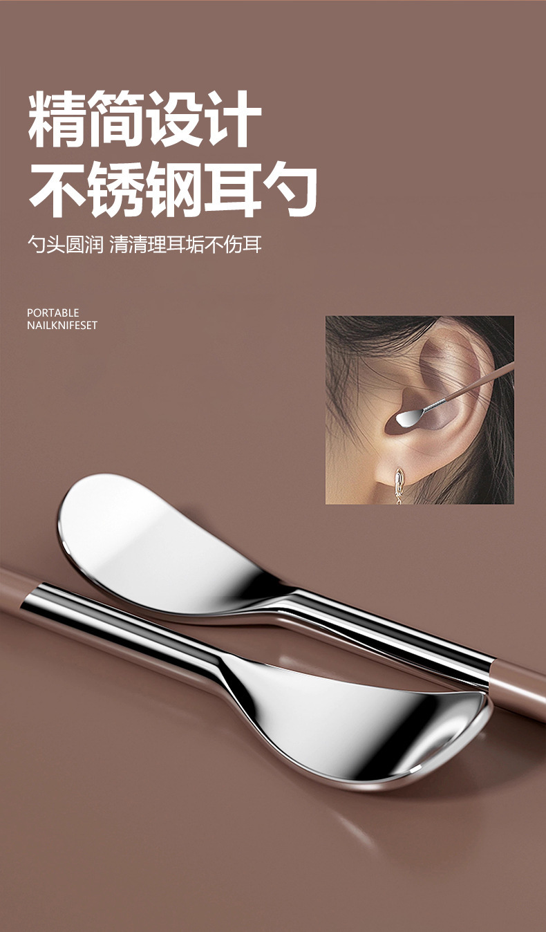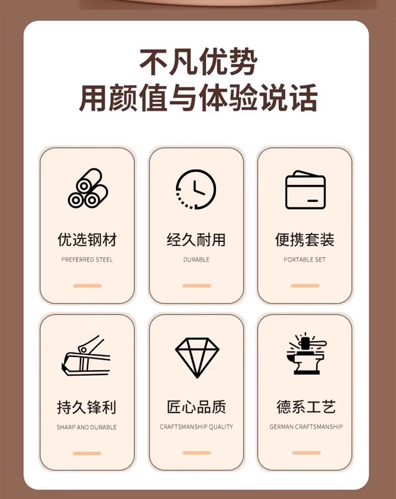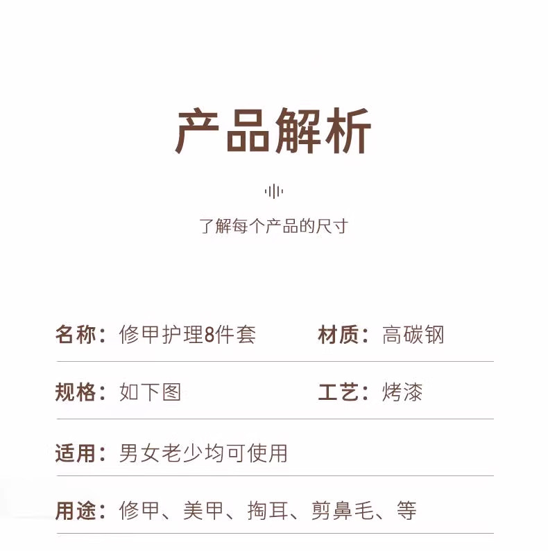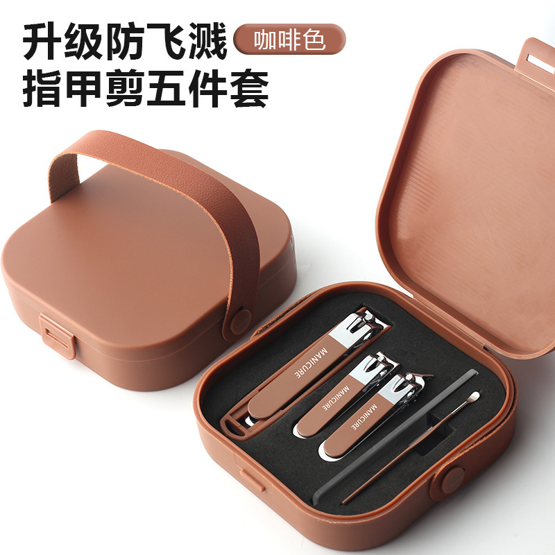 新款手提防飞溅8件套指甲刀套装跨境现货棕色指甲剪套盒印刷logo