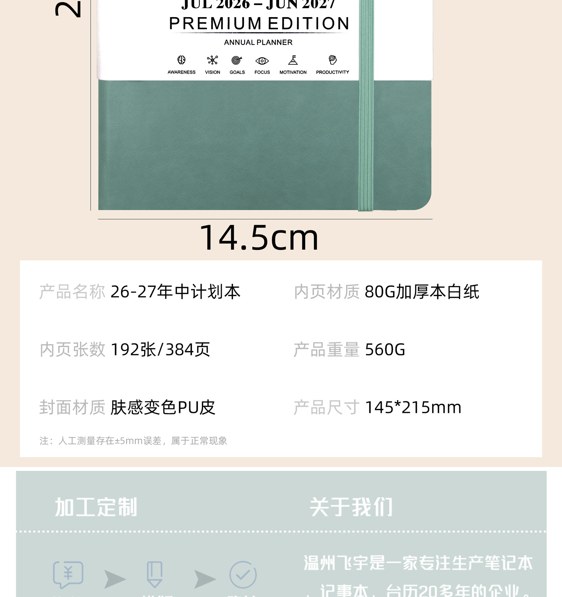26-27跨境日程本亚马逊英文记事本A5年历本效率手册笔记本可定制