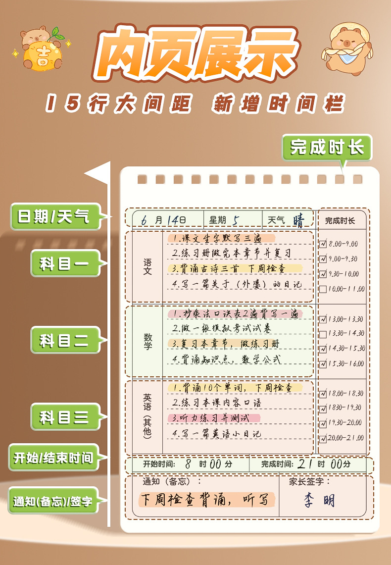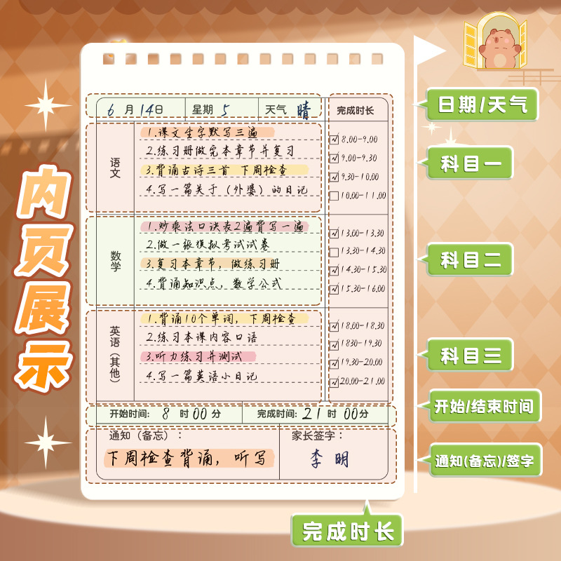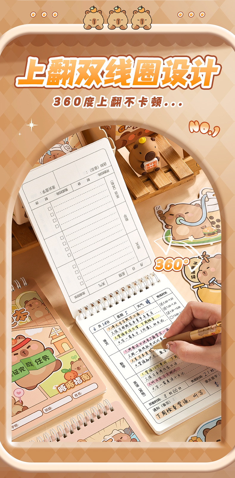 上翻线圈本可爱作业登记本小学生抄写课堂作业本加厚不硌手笔记本