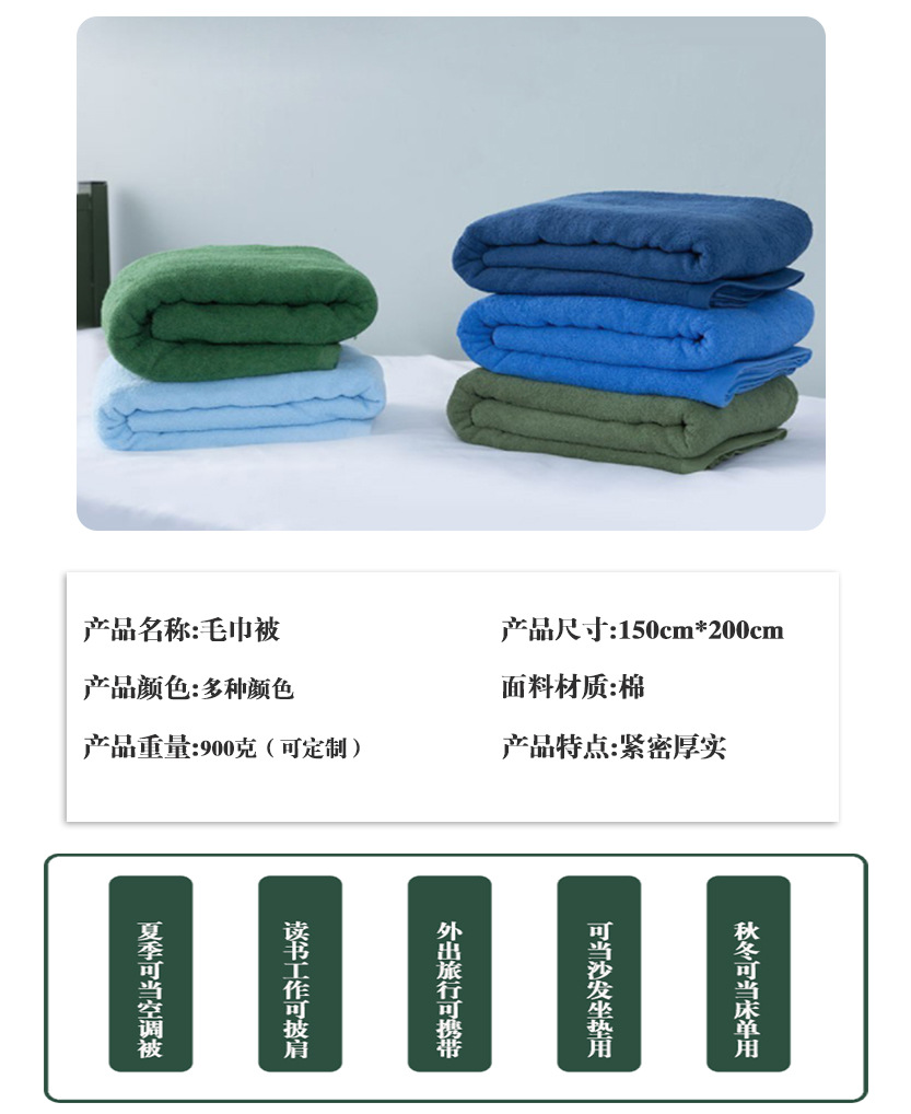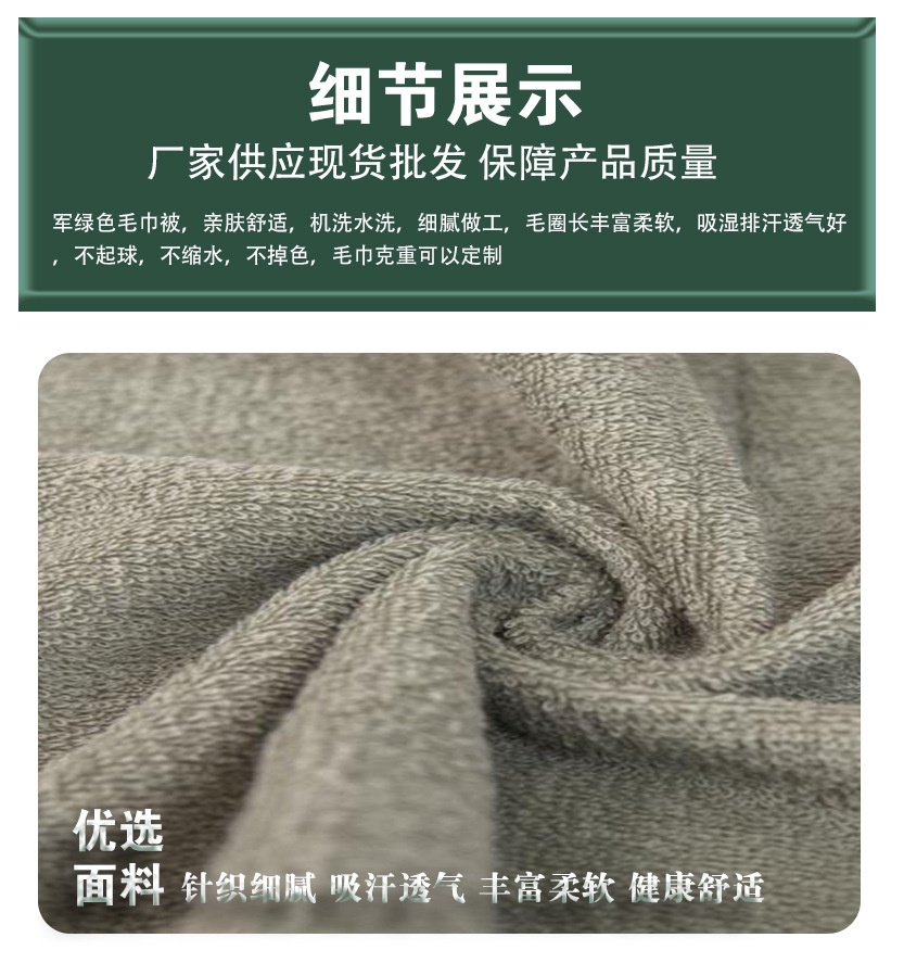 批发民政救灾应急军绿色毛巾被夏季学生军训毛巾被纯棉夏凉被毛巾